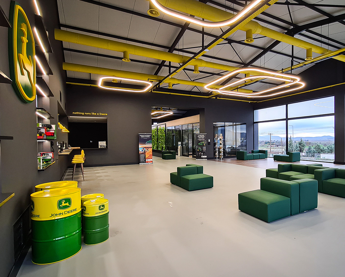 Η αναβάθμιση του φωτισμού στους εκθεσιακούς χώρους JOHN DEERE δημιούργησε ένα περιβάλλον που συνδυάζει λειτουργικότητα, ασφάλεια και επαγγελματισμό. Οι νέες φωτεινές λύσεις εξασφαλίζουν ιδανικές συνθήκες για παρουσίαση προϊόντων και καθημερινή εργασία, διευκολύνοντας το προσωπικό και προσφέροντας ευχάριστη εμπειρία στους επισκέπτες. Η εγκατάσταση αναδεικνύει την αισθητική και τον ενιαίο χαρακτήρα των χώρων, ενισχύοντας την εταιρική ταυτότητα και το οπτικό αποτύπωμα της μάρκας. Παράλληλα, η λύση φωτισμού βελτιώνει την ενεργειακή αποδοτικότητα και διασφαλίζει μακροχρόνια αξιοπιστία, προσφέροντας ένα σταθερό, αποτελεσματικό και υψηλής ποιότητας περιβάλλον που αντικατοπτρίζει τις αξίες και την φιλοσοφία της JOHN DEERE.