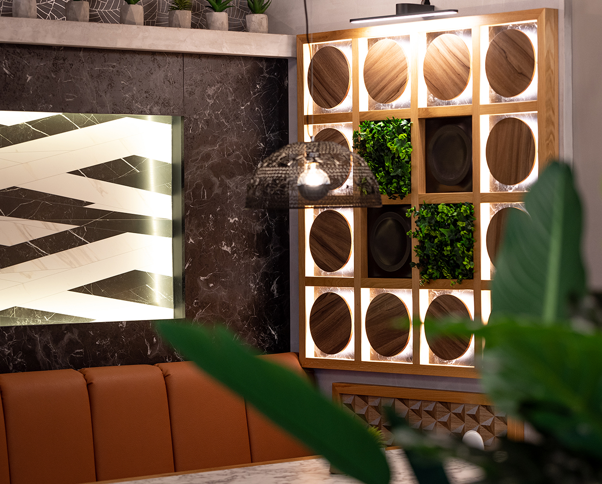 πρώτη στιγμή. Ο φωτισμός σχεδιάστηκε ώστε να αναδεικνύει τα πιάτα και τις