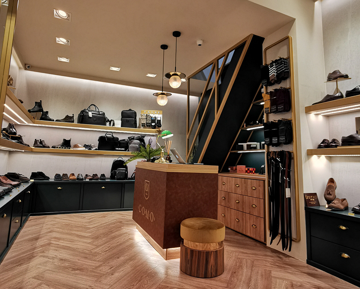 Η φωτιστική αναβάθμιση στο κατάστημα COMO μετατρέπει το κατάστημα σε προορισμό υψηλής μόδας, όπου κάθε ζευγάρι υποδημάτων πρωταγωνιστεί. Ο φωτισμός αναδεικνύει τις λεπτομέρειες, τα υλικά και τις μοναδικές υφές, δημιουργώντας εντυπωσιακά σημεία προβολής που τραβούν το βλέμμα και προκαλούν θαυμασμό. Η στρατηγική κατανομή φωτισμού οδηγεί τους επισκέπτες σε κάθε γωνιά, προσφέροντας αίσθηση πολυτέλειας και αποκλειστικότητας σε όλη την εμπειρία αγορών. Κάθε στοιχείο φωτισμού συνδυάζει αισθητική, λειτουργικότητα και αίσθηση χώρου, μετατρέποντας την επίσκεψη σε μια μοναδική, premium εμπειρία που ενισχύει την εικόνα και το κύρος του brand.