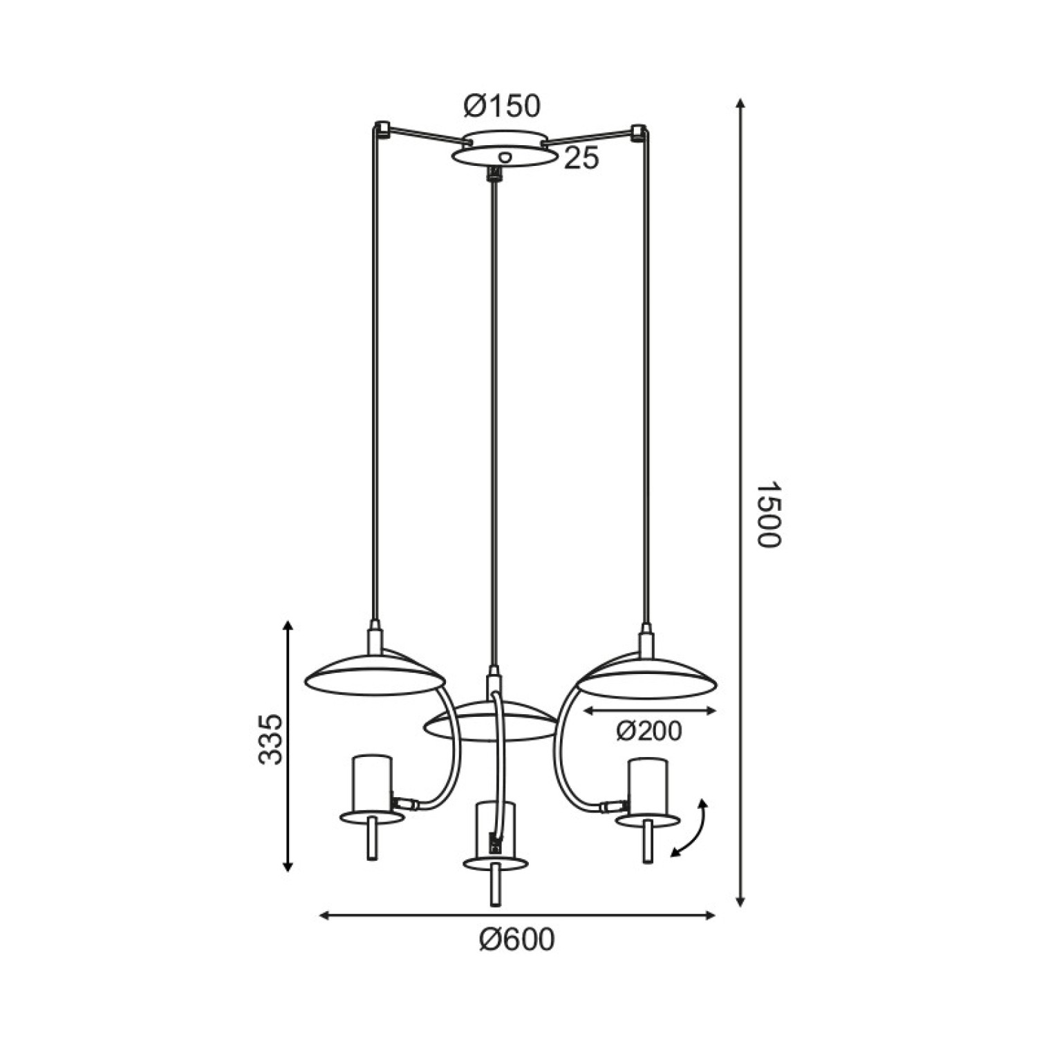 NETTO ΦΩΤΙΣΤΙΚΟ ΚΡΕΜΑΣΤΟ ΜΑΥΡΟ ΜΑΤ ΜΕΤΑΛΛΙΚΟ ΣΥΜΒΑΤΙΚΟ 3ΧGU10 IP20 Φ600Χ1500mm