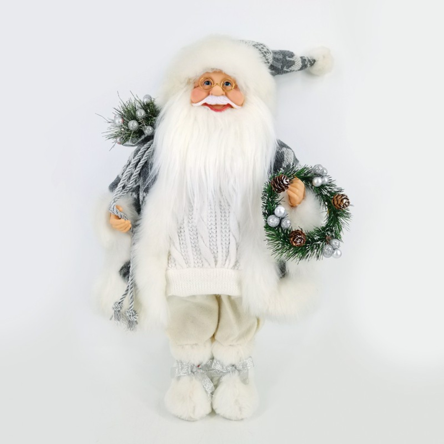 DECO FABRIC SANTA CLAUS WITH WREATH 45CM