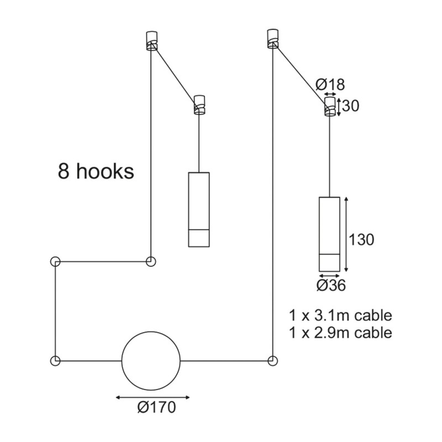 NETTO ΚΡΕΜΑΣΤΟ/ΟΡΟΦΗΣ Φ/Σ 2ΧG9 ΜΑΥΡΟ ΑΛΟΥΜΙΝΙΟ 2x D3,6XH13CM ΚΑΛΩΔΙΟ 2,9-3,1M 8HOOKS TERES