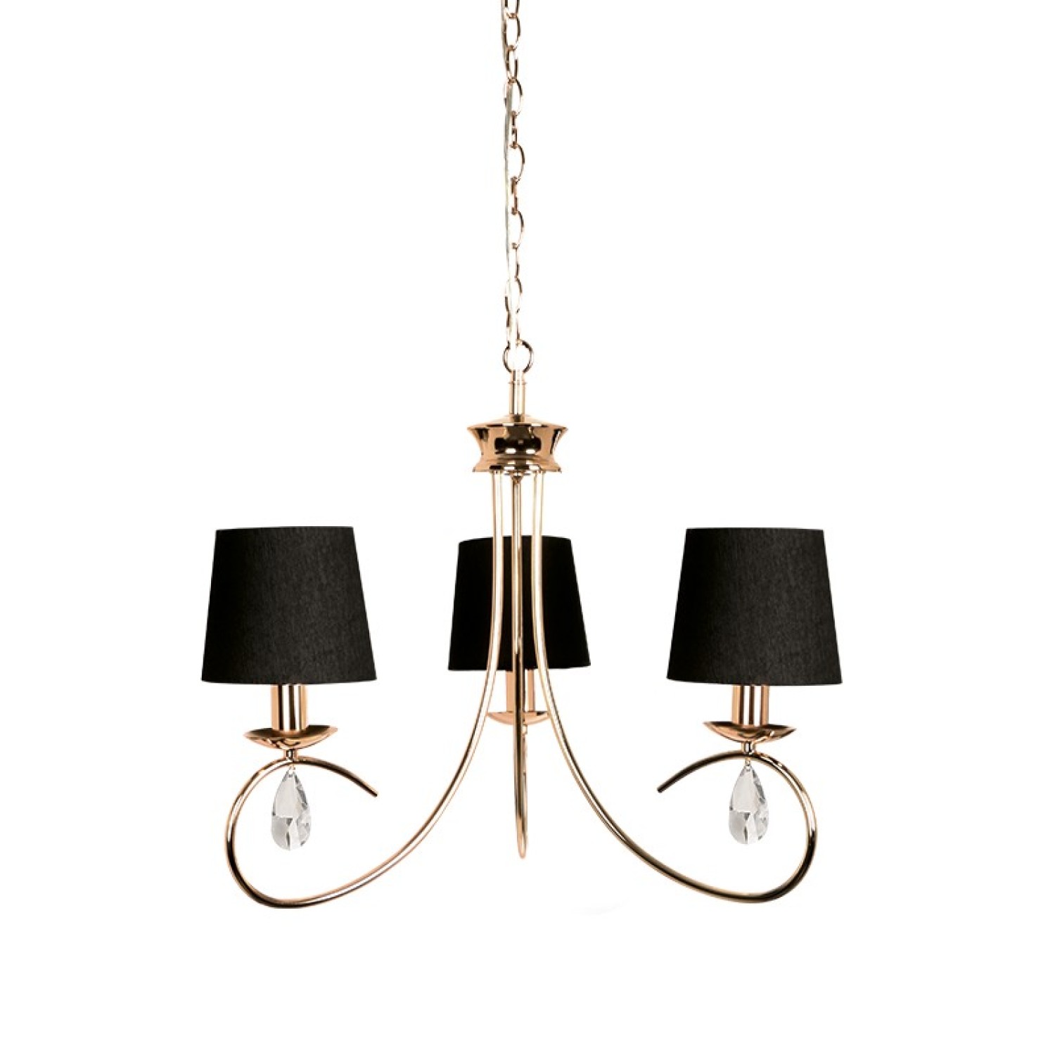 Μεταλλικό χρυσοχάλκινο φωτιστικό με μαύρο σαγρέ υφασμάτινο καπέλο και διακοσμητικά κρύσταλλα σε σχήμα "σταγόνα".