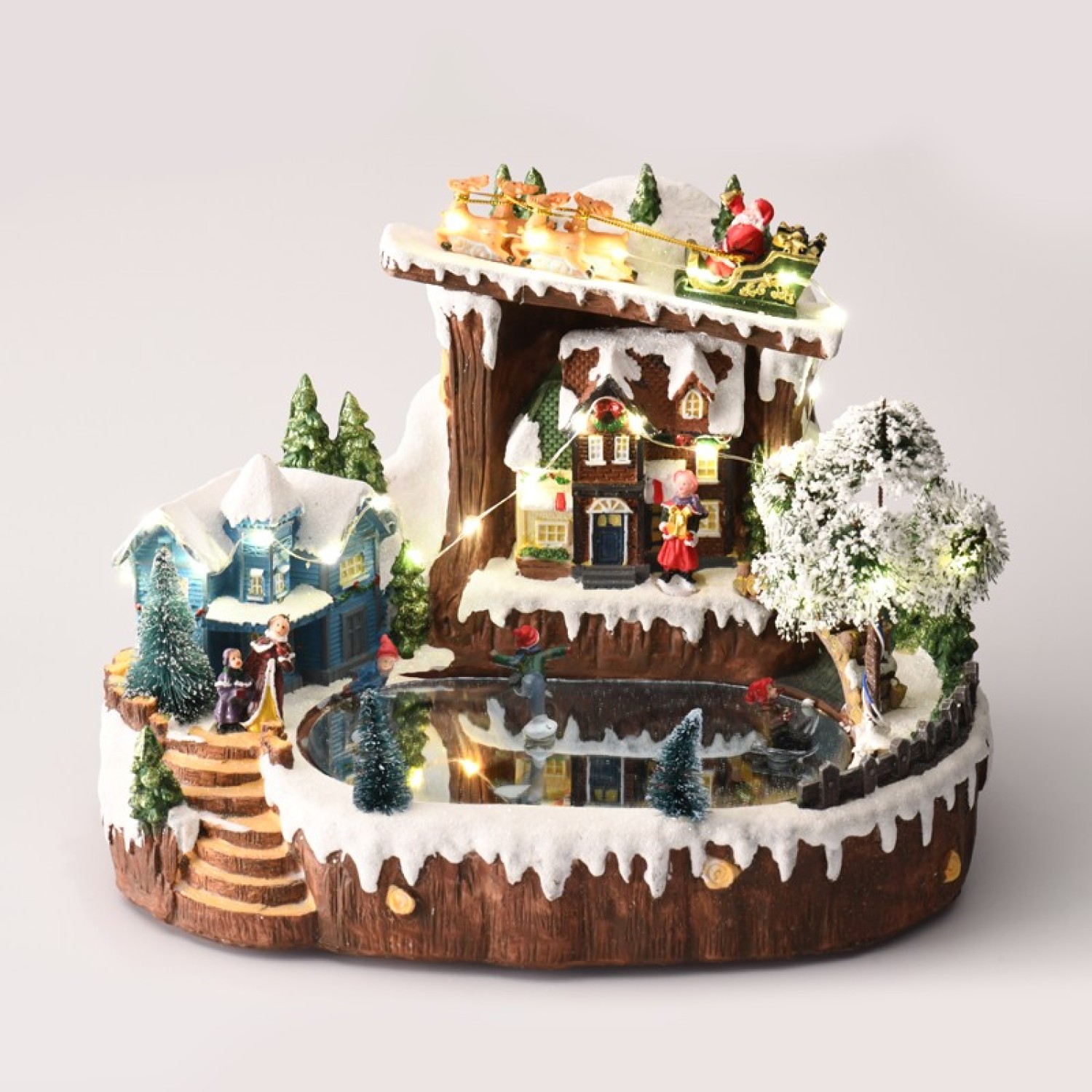LED WW DECOR MULTICOLOR VILLAGE+ROTATION SKATING+MUSIC 4.5V (ADPAT) / 3ΑΑ (BAT) 32Χ23Χ24CM