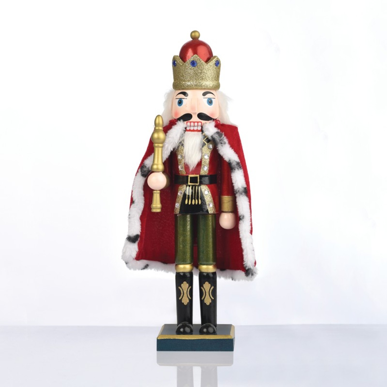 WOODEN NUTCRACKER KING GREEN & RED WITH CAPE H35CM