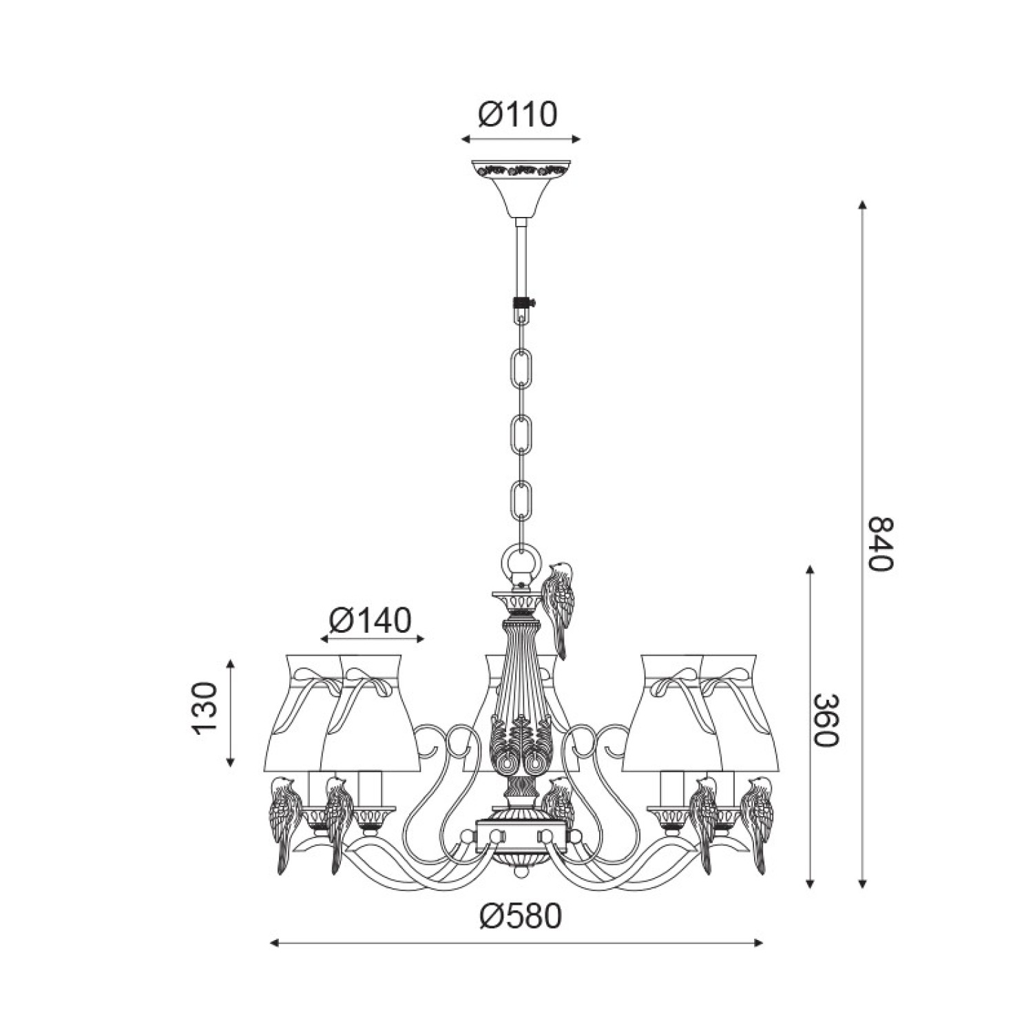 ^PENDANT 5ΧΕ14 METAL METAL WHITE-GOLD+WHITE SHADE Φ58ΧΗ84CM EKAVI