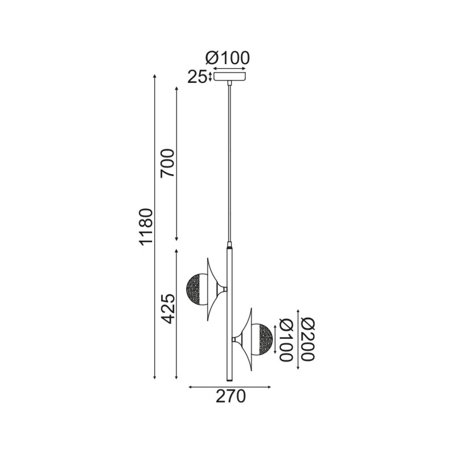 ^NETTO ΚΡΕΜΑΣΤΟ Φ/Σ 2ΧG9 ΧΑΛΚΙΝΟ/ΜΑΥΡΟ ΜΕΤ/ΚΟ + ΓΥΑΛΙ 27Χ20ΧΗ118CM HYDRA