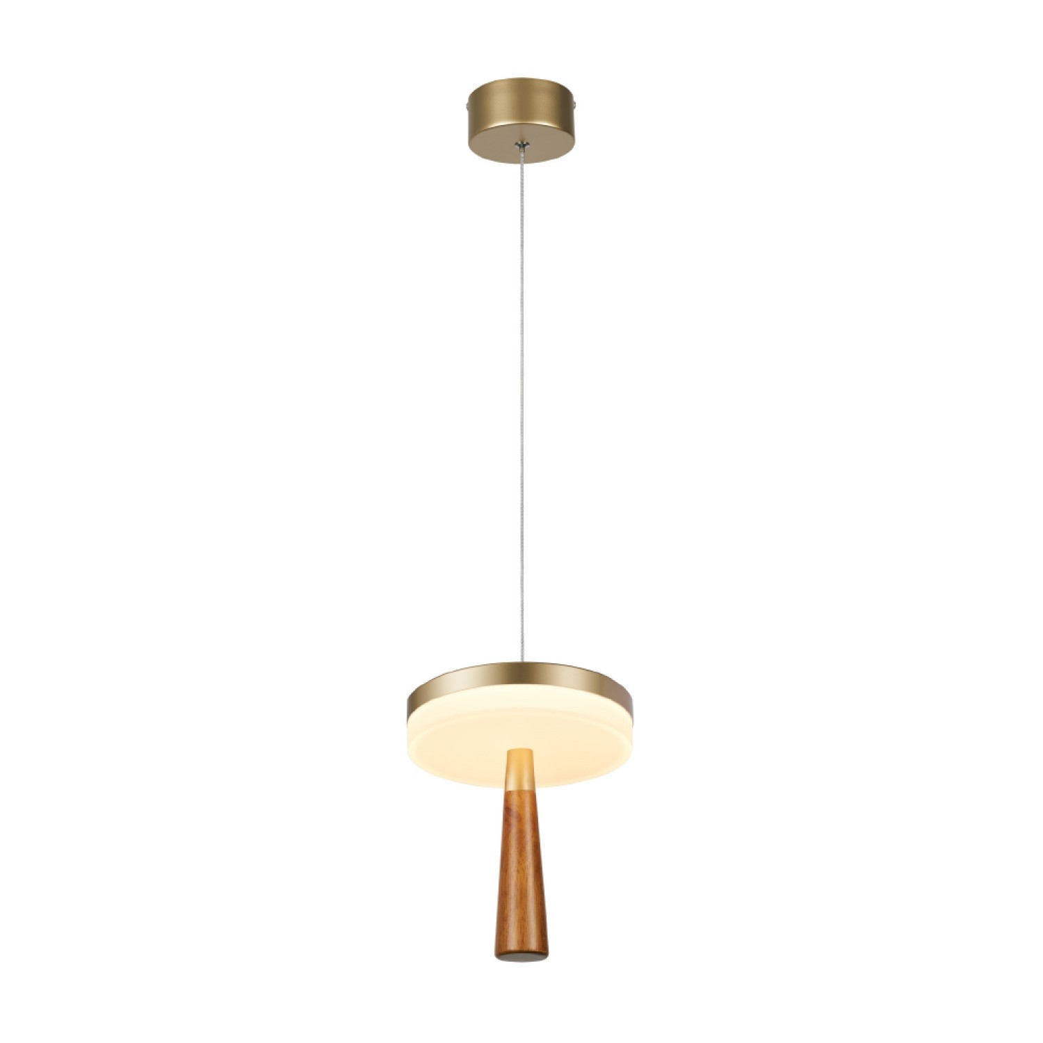 Το κρεμαστό φωτιστικό της σειράς ASIAN σε χρυσή απόχρωση. Κατασκευασμένο από αλουμίνιο, σίδερο και ξύλο, διαθέτει ενσωματωμένο LED SMD ισχύος 11W και φωτεινότητα 715Lm. Αποτελεί εξαιρετική επιλογή για υπνοδωμάτια και καθιστικούς χώρους που χρειάζονται διακριτικό και ζεστό φωτισμό με μοντέρνα αισθητική.