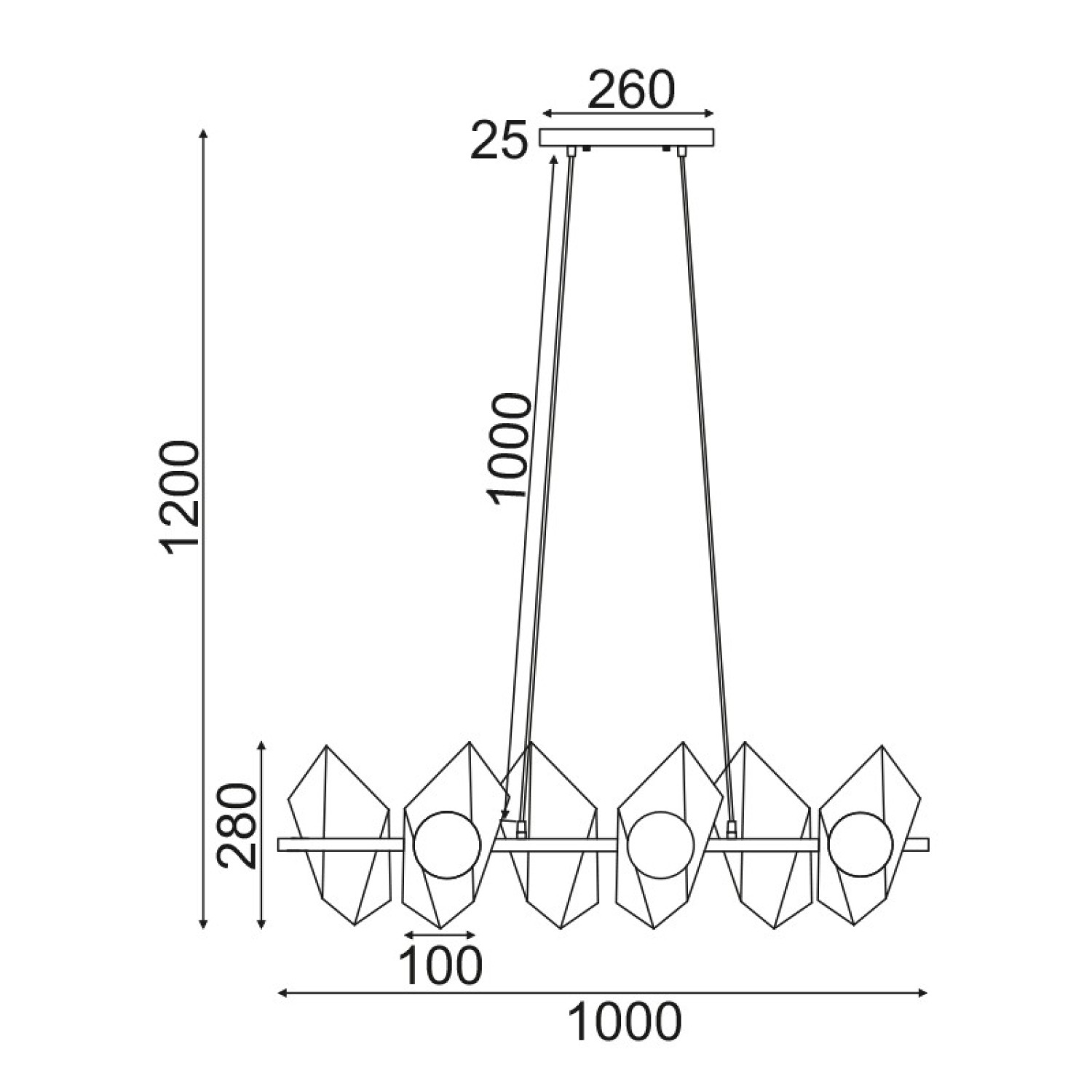 ^NETTO ΚΡΕΜΑΣΤΟ Φ/Σ 6ΧG9 ΧΡΥΣΟ/ΜΑΥΡΟ ΜΕΤ/ΚΟ + ΓΥΑΛΙ 100Χ26ΧΗ120CM POLYGON