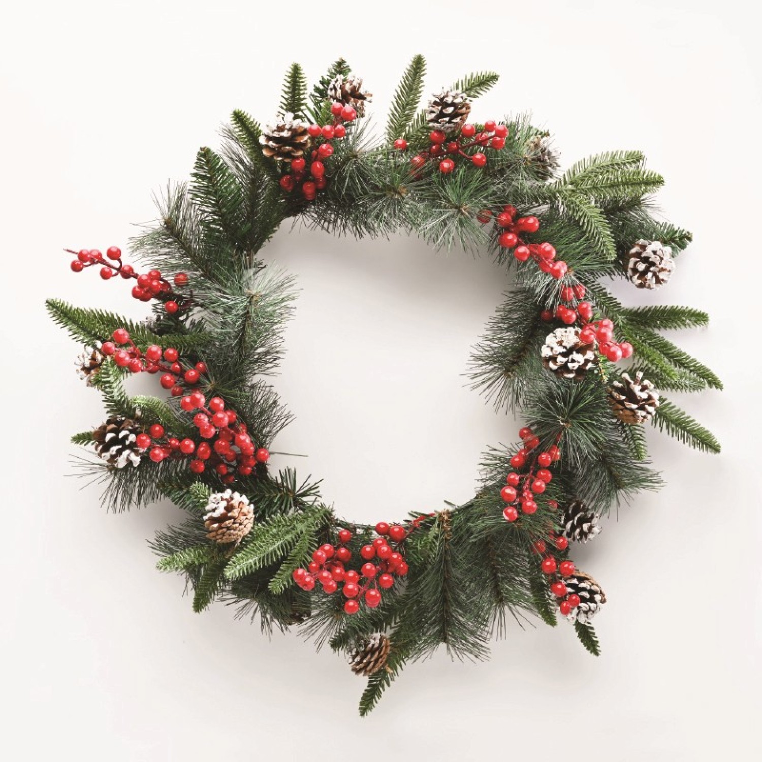ΧΡΙΣΤΟΥΓΕΝΝΙΑΤΙΚΟ ΣΤΕΦΑΝΙ ΜΕ ΚΟΚΚΙΝΑ BERRIES & ΚΟΥΚΟΥΝΑΡΙΑ PE/PVC 500mm
