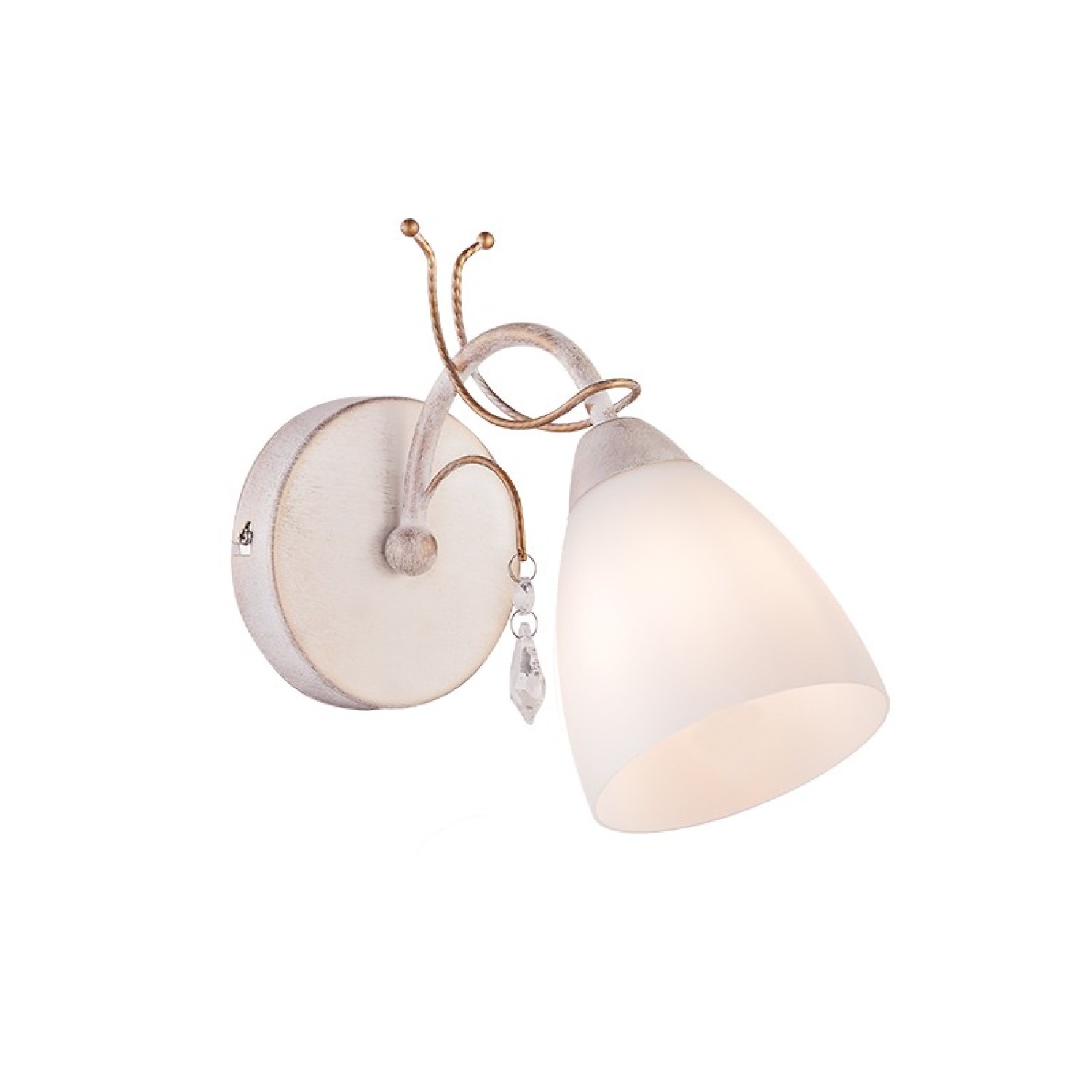 WALL MOUNTED 1XE14 METAL PATINΑ GOLD+ WHITE GLASS+ CRYSTAL 12Χ18,5Χ26,4CM QUINCE