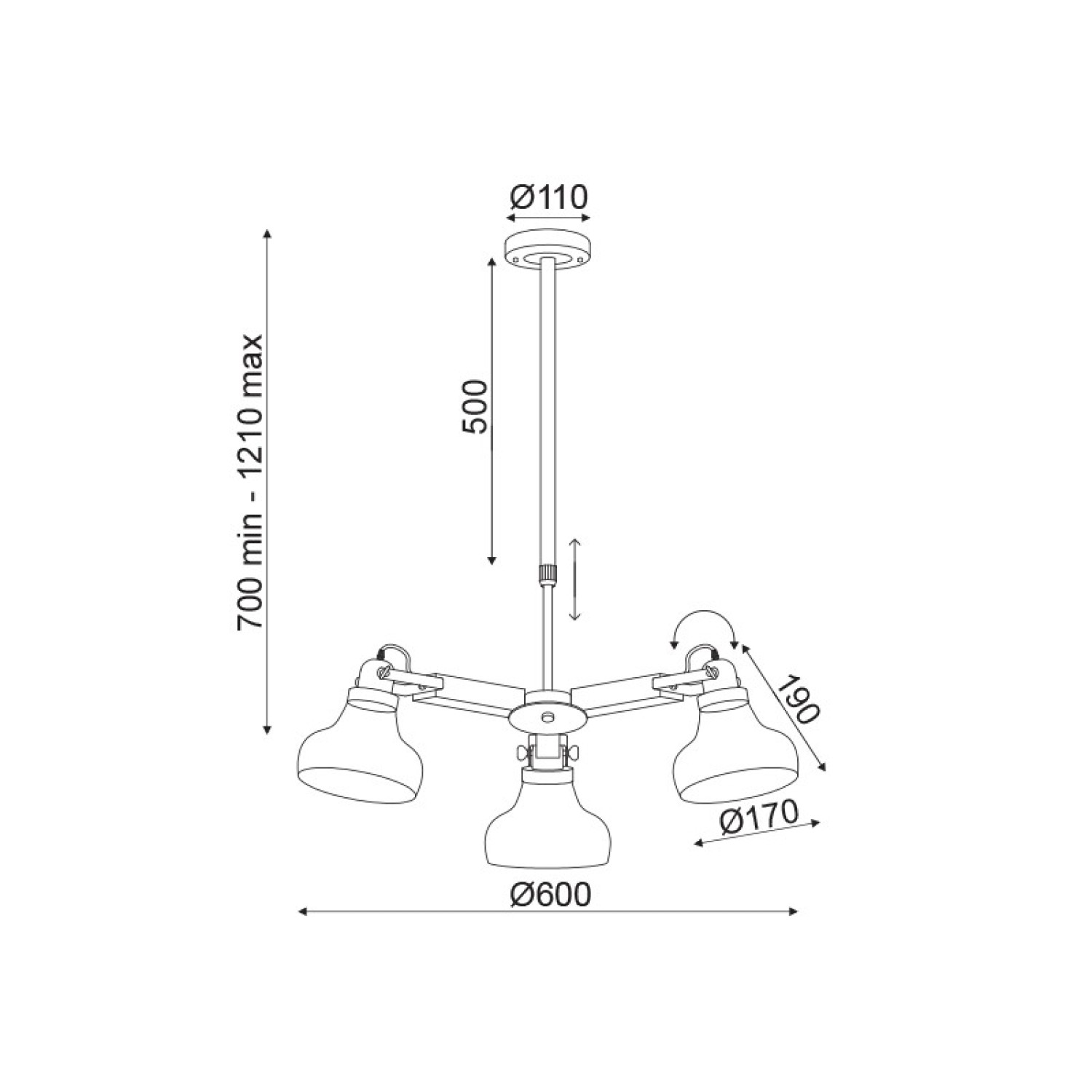 NETTO ΦΩΤΙΣΤΙΚΟ ΚΡΕΜΑΣΤΟ ΜΑΥΡΟ ΜΑΤ ΜΕΤΑΛΛΙΚΟ ΣΥΜΒΑΤΙΚΟ 3ΧΕ27 IP20 Φ600Χ700-1210mm
