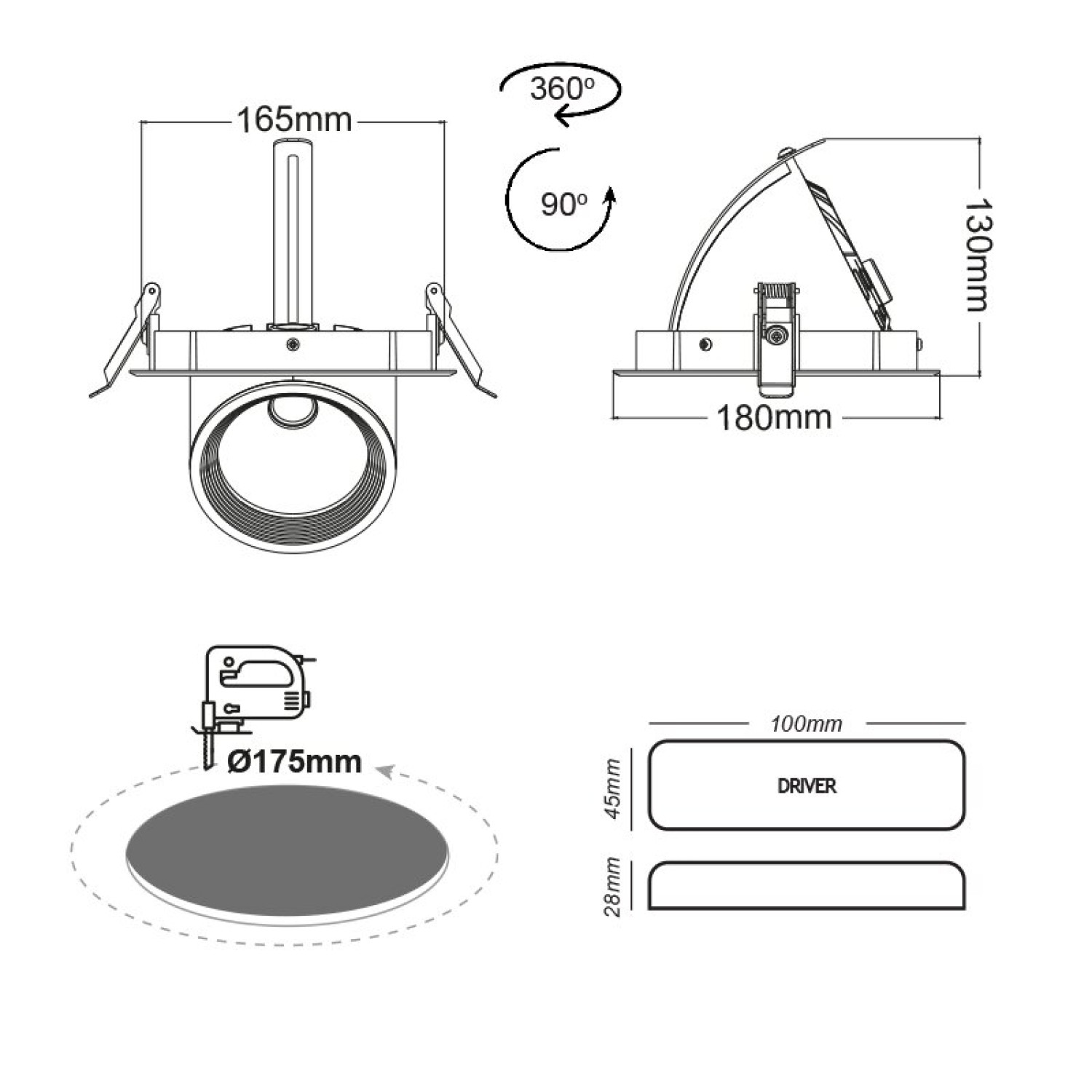 WHITE LED RECESSED MOVABLE LUMINAIRE 30W 4000K 60° 2480LM 230V Ra80