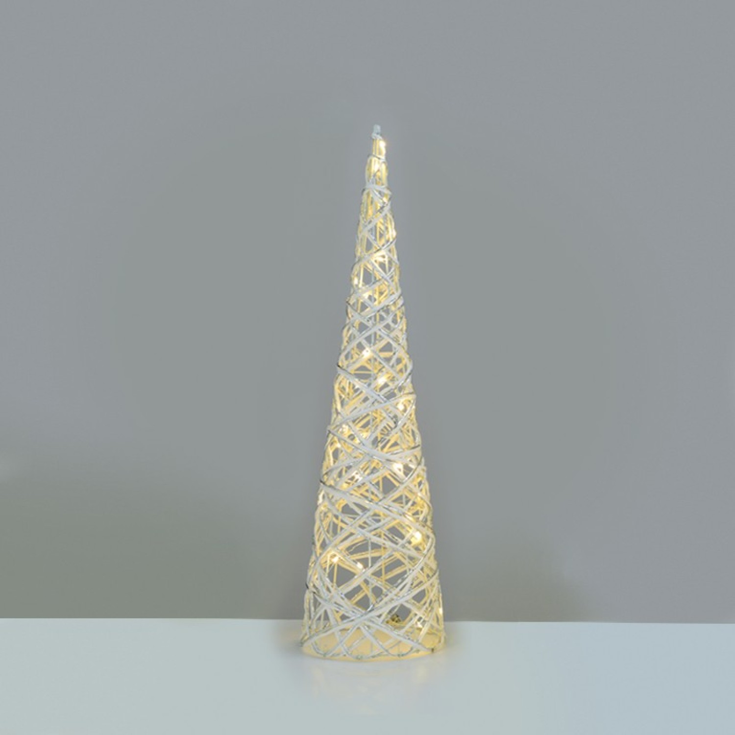 ΔΙΑΚΟΣΜΗΤΙΚΟ ΔΕΝΤΡΟ ΣΕ ΣΧΗΜΑ ΚΩΝΟΥ ΛΕΥΚΟ & ΑΣΗΜΙ 30 MINI LED ΘΕΡΜΟ ΛΕΥΚΟ ΜΕ ΜΠΑΤΑΡΙΕΣ 3xAA IP20 Φ170x600mm