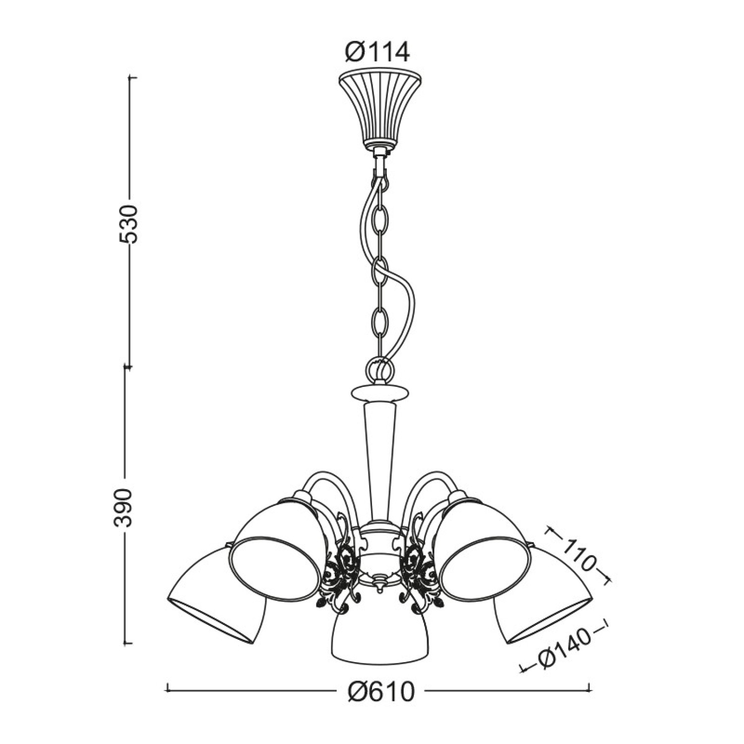 NETTO ΦΩΤΙΣΤΙΚΟ ΚΡΕΜΑΣΤΟ ΛΕΥΚΗ ΠΑΤΙΝΑ ΜΕΤΑΛΛΙΚΟ ΣΥΜΒΑΤΙΚΟ 3ΧΕ14 IP20 Φ610Χ920mm