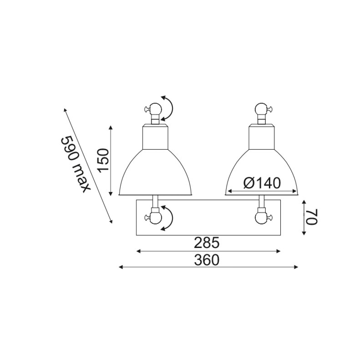 NETTO ΦΩΤΙΣΤΙΚΟ ΕΠΙΤΟΙΧΟ ΜΑΥΡΟ ΜΕΤΑΛΛΙΚΟ ΣΥΜΒΑΤΙΚΟ 2ΧΕ27 IP20 360Χ70mm