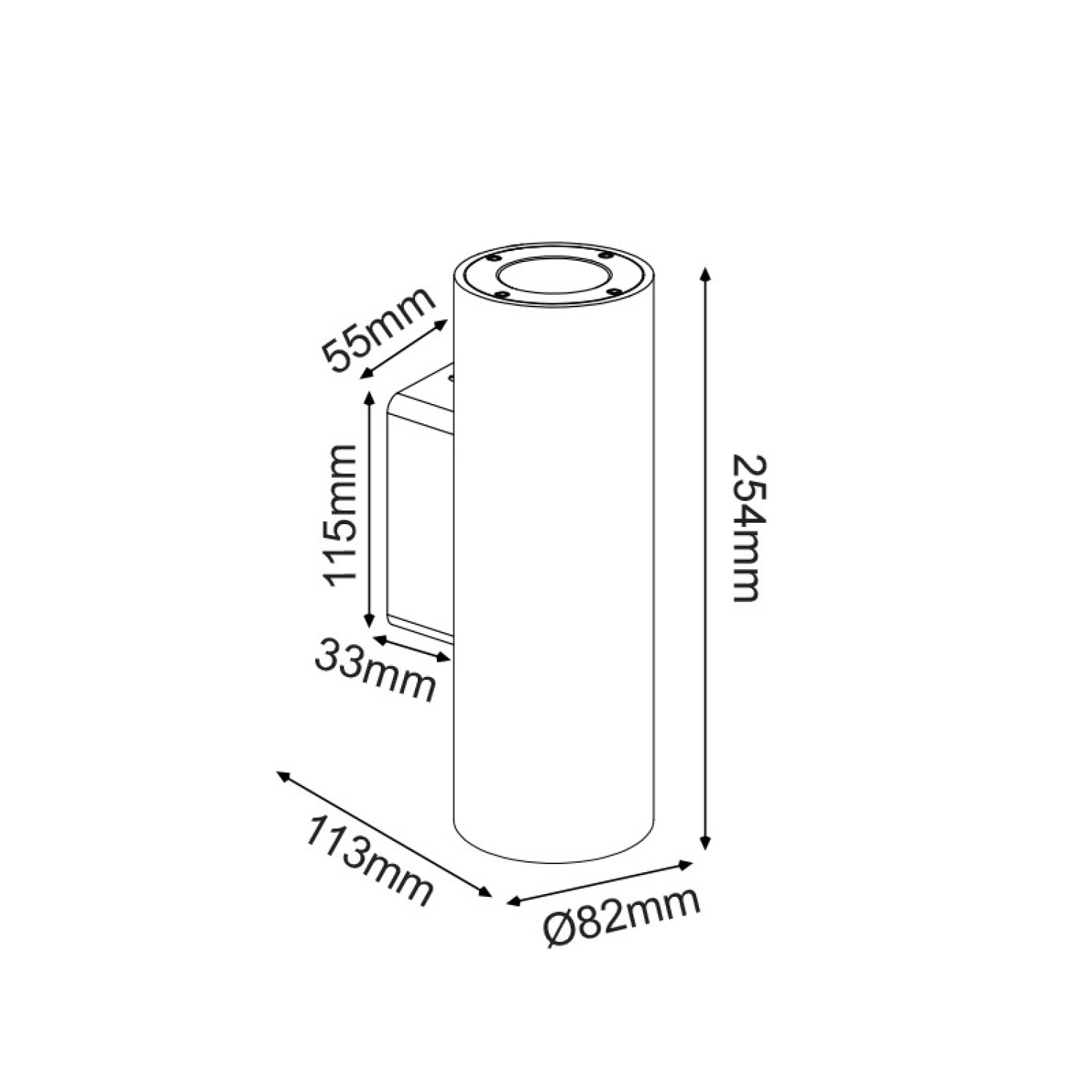 ATTICUS - ΣΠΟΤ ΤΟΙΧΟΥ 2 ΔΕΣΜΕΩΝ ΣΤΡΟΓΓΥΛΟ ΤΣΙΜΕΝΤΕΝΙΟ ΜΑΥΡΟ ΣΥΜΒΑΤΙΚΟ 2xGU10 & LED 7W IP65 82x113x254mm