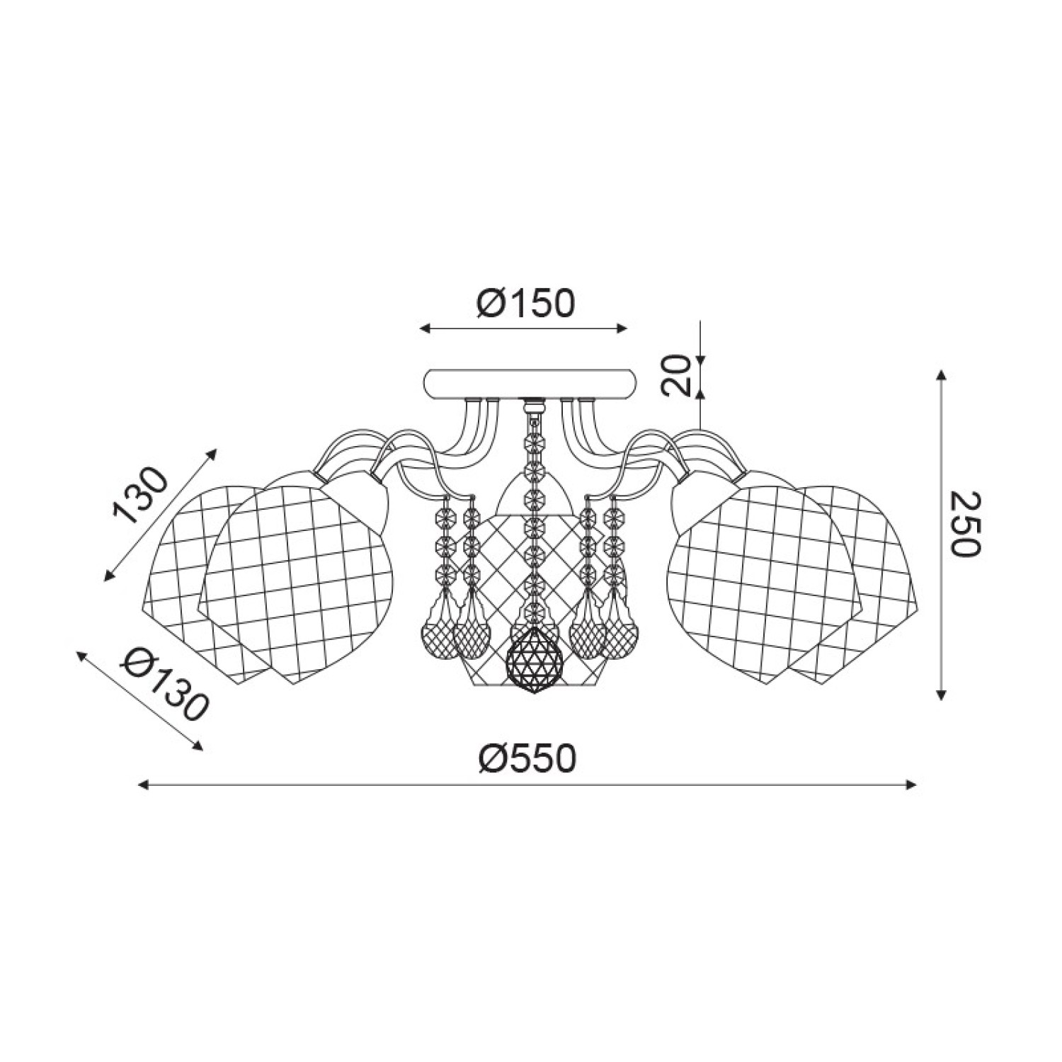 ^NETTO Φ/Σ ΟΡΟΦΗΣ 5ΧΕ27 ΜΕΤΑΛ ΠΑΤΙΝΑ+ΓΥΑΛΙ+ΚΡΥΣΤΑΛΛΑ Φ55ΧΗ22,5CM OPORTO