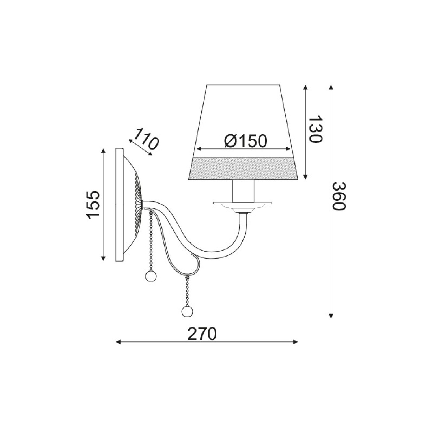 ^WALL LUMINAIRE 1ΧΕ14 METALLIC BLACK+ WHITEBLACK SHADE+ CRYSTAL 25Χ15Χ21CM MULAN