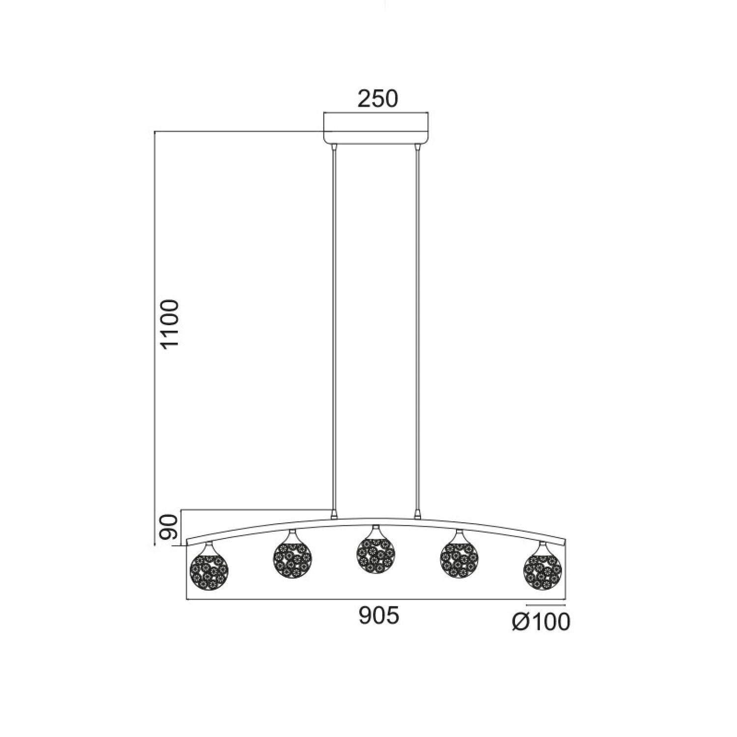 NETTO ΦΩΤΙΣΤΙΚΟ ΚΡΕΜΑΣΤΟ ΧΡΩΜΙΟ ΜΕΤΑΛΛΙΚΟ ΣΥΜΒΑΤΙΚΟ 5ΧG9 IP20 Φ905Χ1100mm