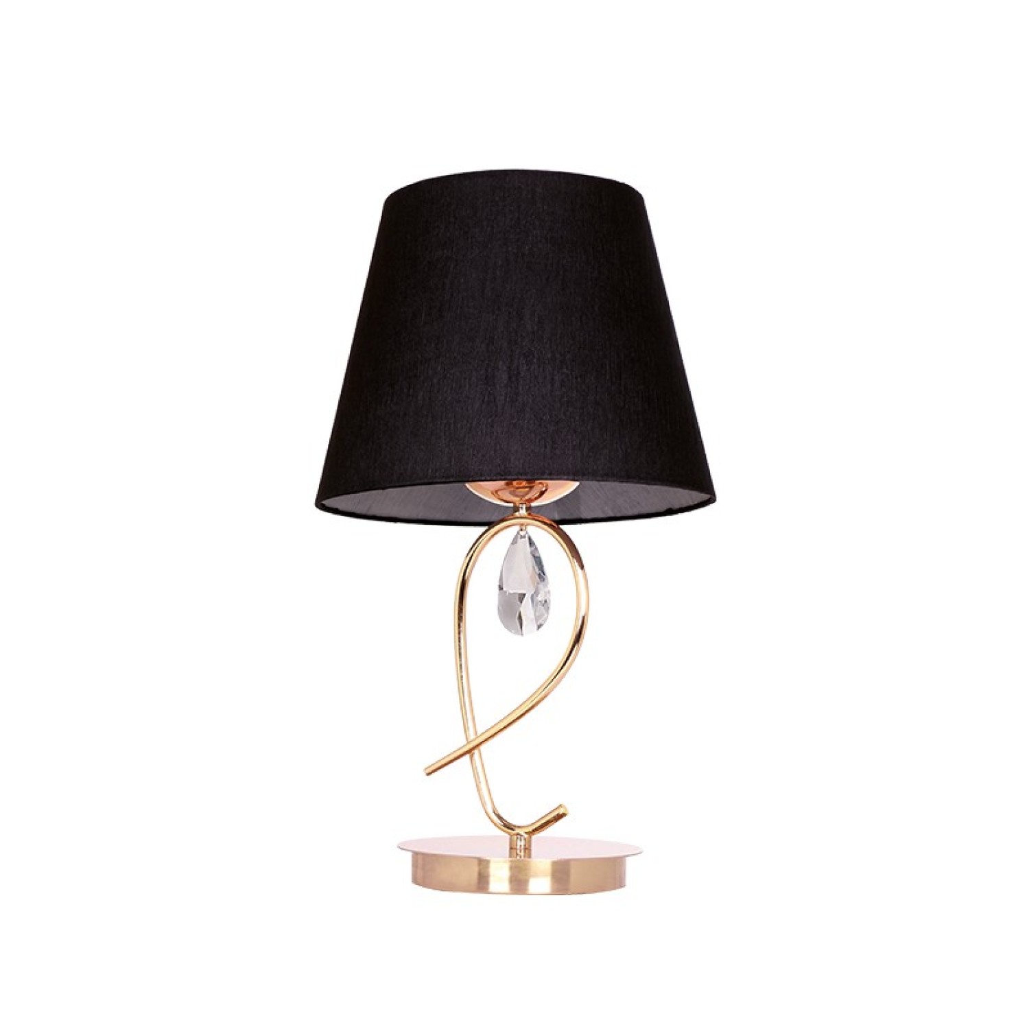 Μεταλλικό χρυσοχάλκινο φωτιστικό με μαύρο σαγρέ υφασμάτινο καπέλο και διακοσμητικό κρύσταλλο σε σχήμα "σταγόνα".