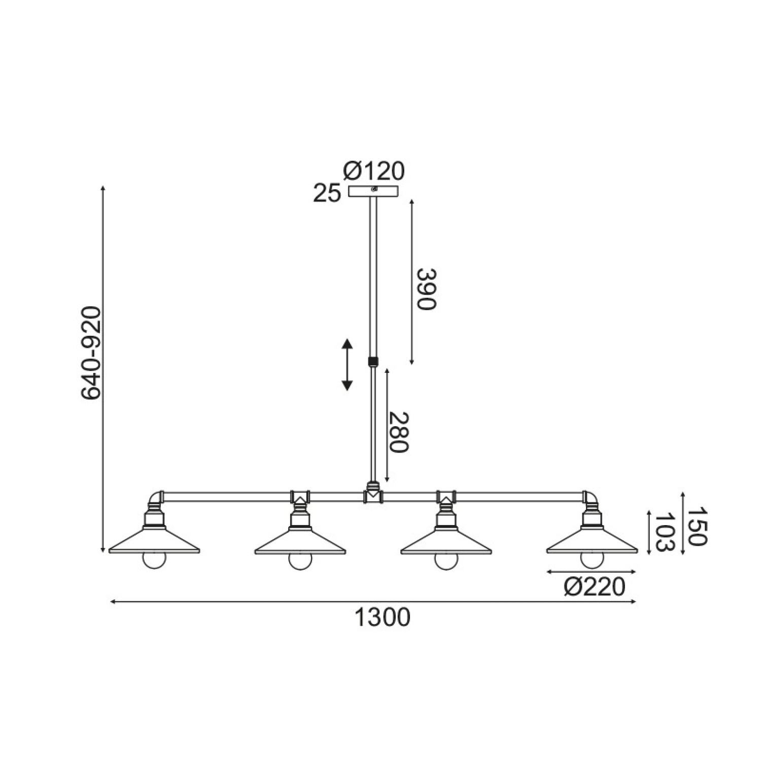 NETTO ΦΩΤΙΣΤΙΚΟ ΚΡΕΜΑΣΤΟ ΜΑΥΡΟ ΜΕΤΑΛΛΙΚΟ ΣΥΜΒΑΤΙΚΟ 4ΧΕ27 IP20 1300Χ640-920mm