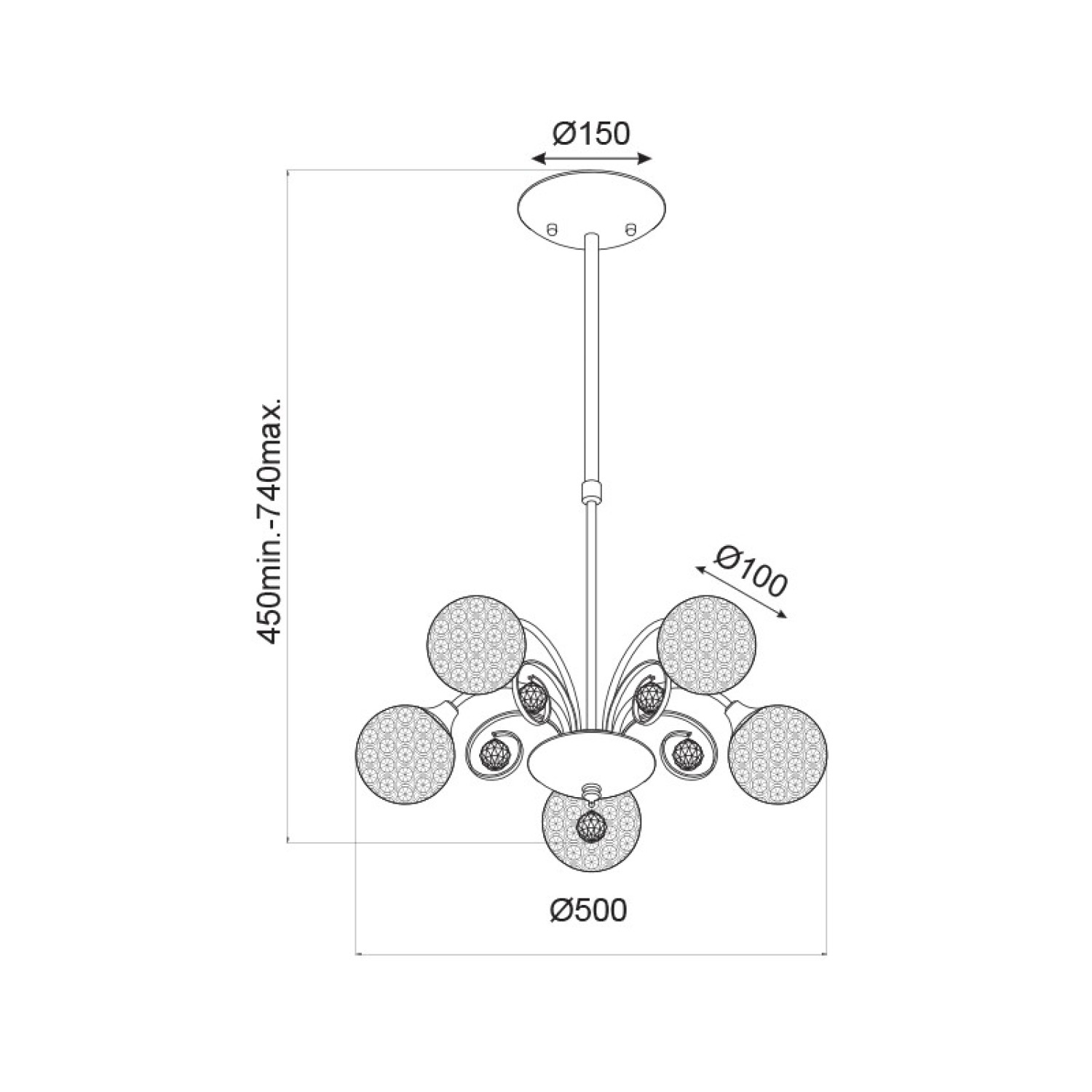 NETTO ΦΩΤΙΣΤΙΚΟ ΚΡΕΜΑΣΤΟ ΧΡΩΜΙΟ ΜΕΤΑΛΛΙΚΟ ΣΥΜΒΑΤΙΚΟ 5ΧG9 IP20 Φ500Χ1190mm