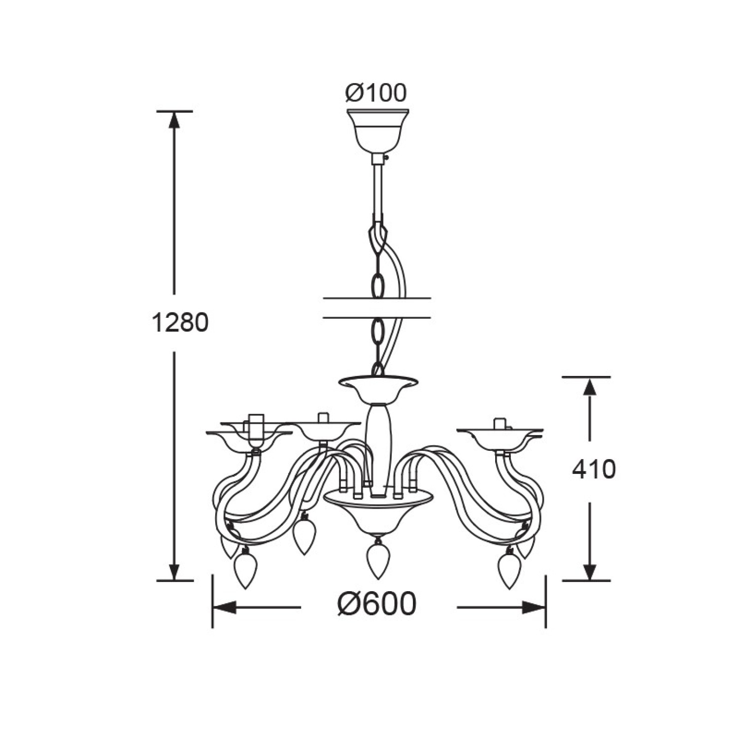 NETTO ΚΡΕΜΑΣΤΟ ΑΚΡΥΛΙΚΟ ΜΑΥΡΟ 5Χ40W Ε14 53x H43cm FIRENZE