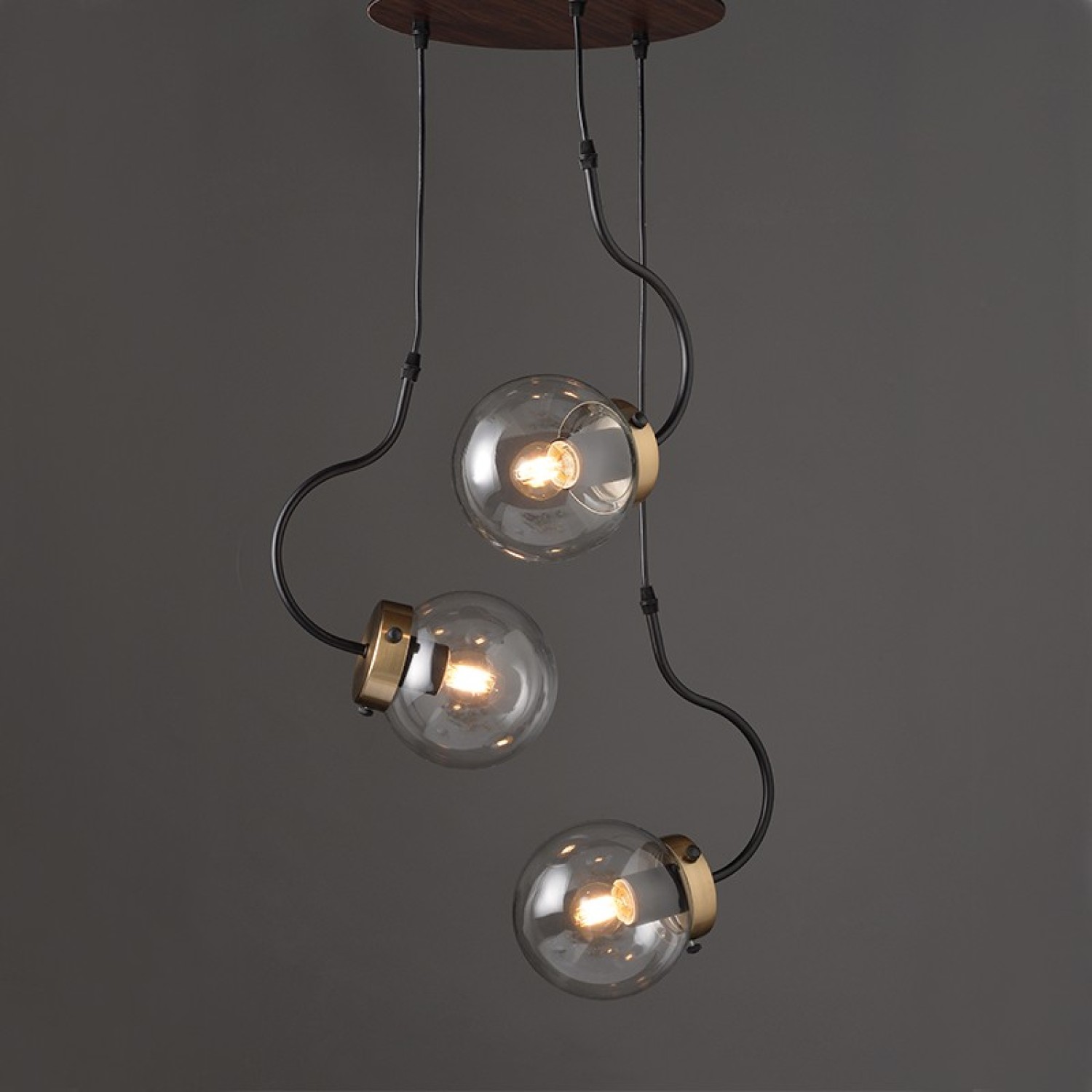 NETTO ΚΡΕΜΑΣΤΟ Φ/Σ 3ΧΕ27 ΓΥΑΛΙ+ΜΕΤΑΛΛΟ+MDF Φ35ΧΗ100CM PUEBLOS