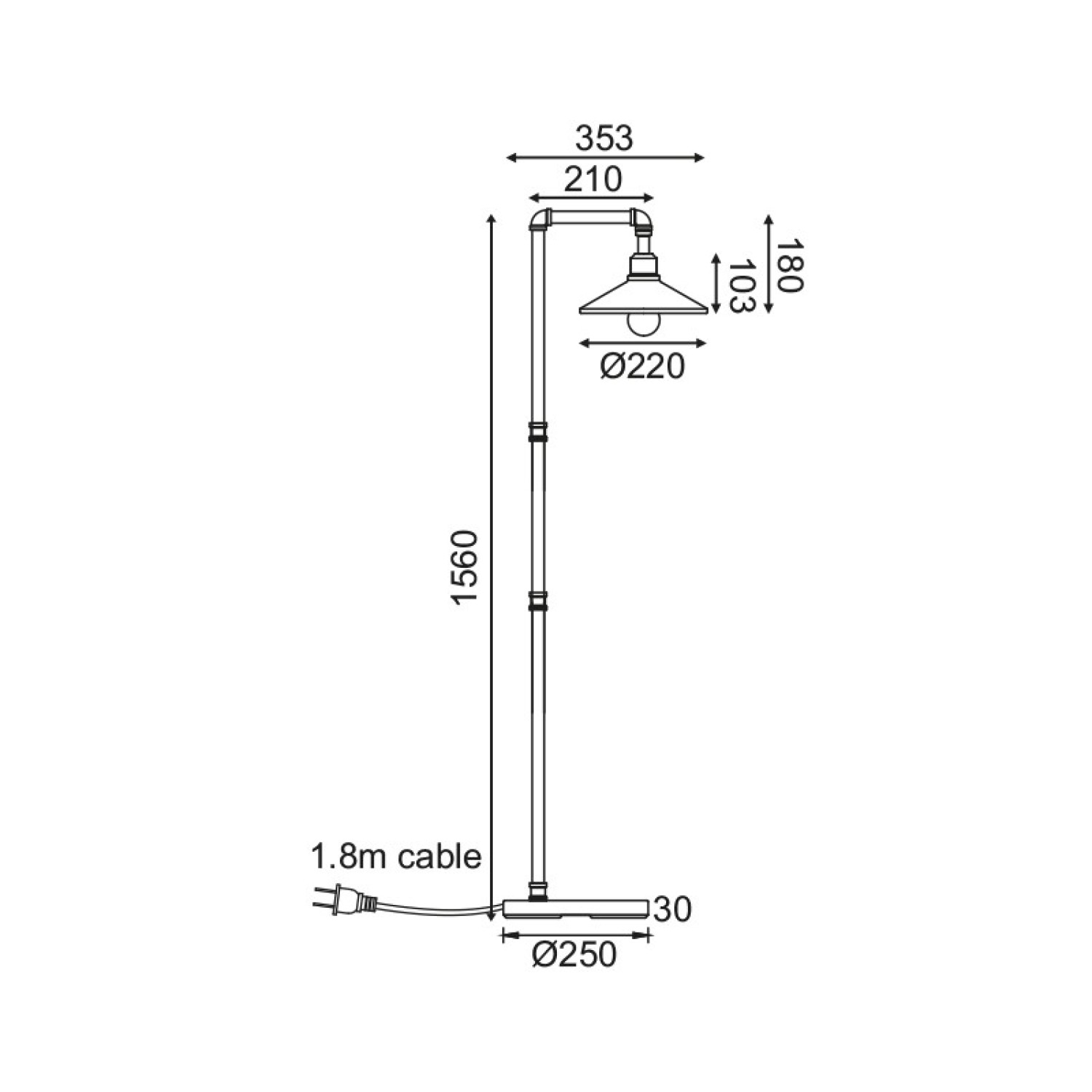 NETTO ΕΠΙΔΑΠΕΔΙΟ Φ/Σ 1ΧΕ27 ΜΑΥΡΟ+ΧΡΥΣΟ ΜΕΤΑΛΛΙΚΟ 35Χ25ΧH156CM PIPE