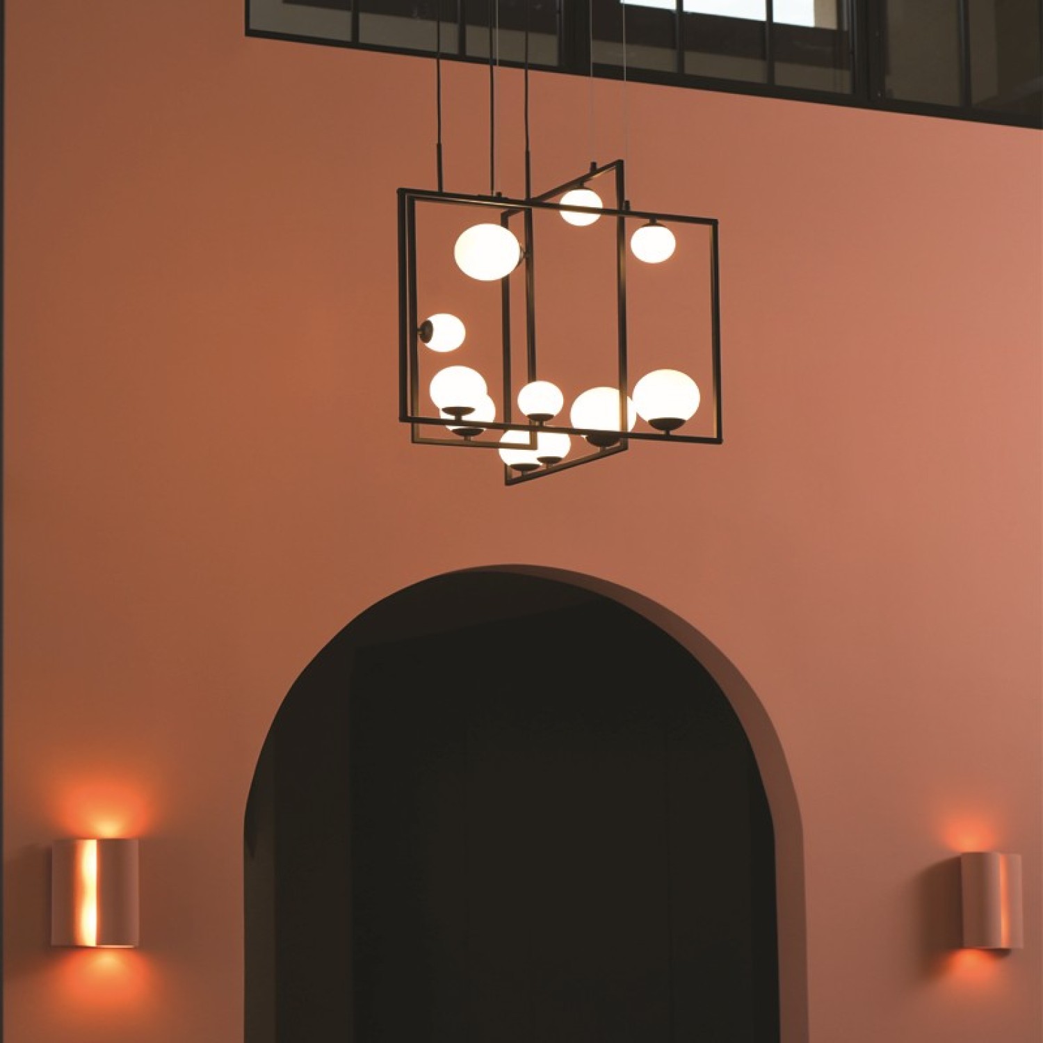 ^NETTO ΚΡΕΜΑΣΤΟ Φ/Σ 4xG9 QUADRO ΜΑΥΡΟ ΜΕΤ/ΚΟ +ΛΕΥΚΟ ΓΥΑΛΙ 49Χ12Χ120CM