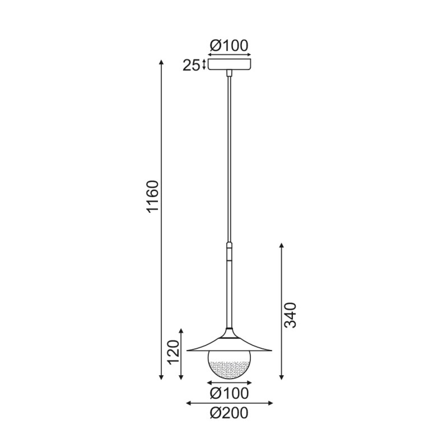 NETTO ΚΡΕΜΑΣΤΟ Φ/Σ 1ΧG9 ΟΡΕΙΧΑΛΚΟ/ΜΑΥΡΟ ΜΕΤ/ΚΟ + ΓΥΑΛΙ D20ΧΗ116CM LAYLA