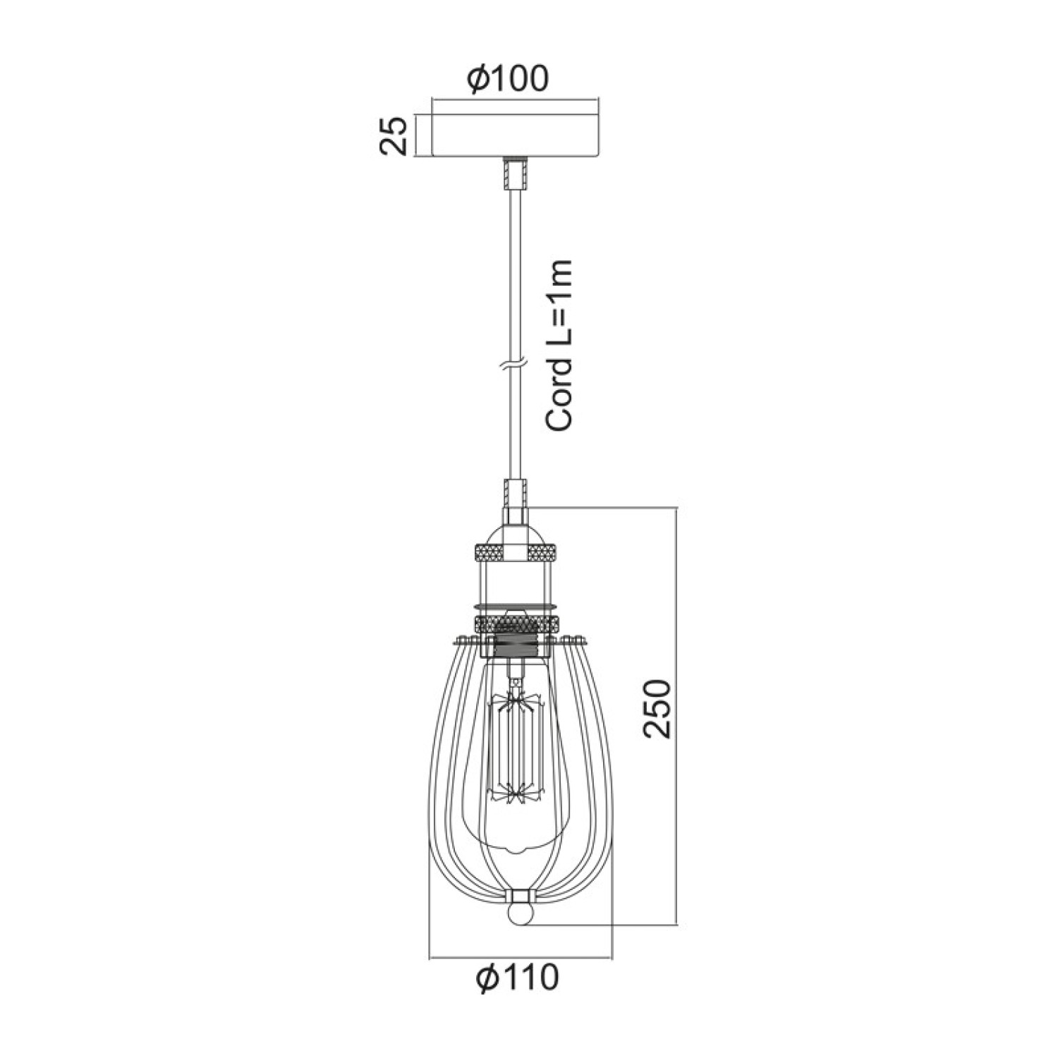 NETTO ΚΡΕΜΑΣΤΟ ΜΕΤΑΛΛΙΚΟ ΜΑΥΡΟ Φ10CM 1ΧE27 SOTIS