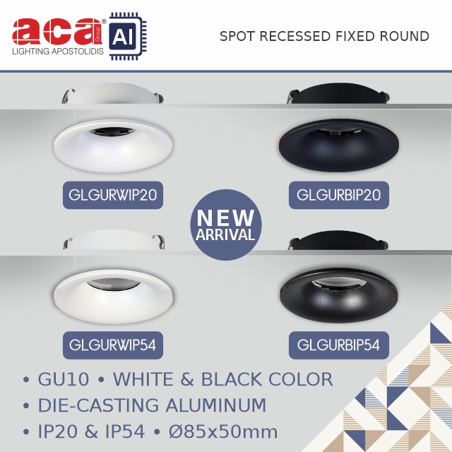 ACA Lighting Apostolidis presents the new collection of fixed round recessed spotlights, made from die-casting aluminum.