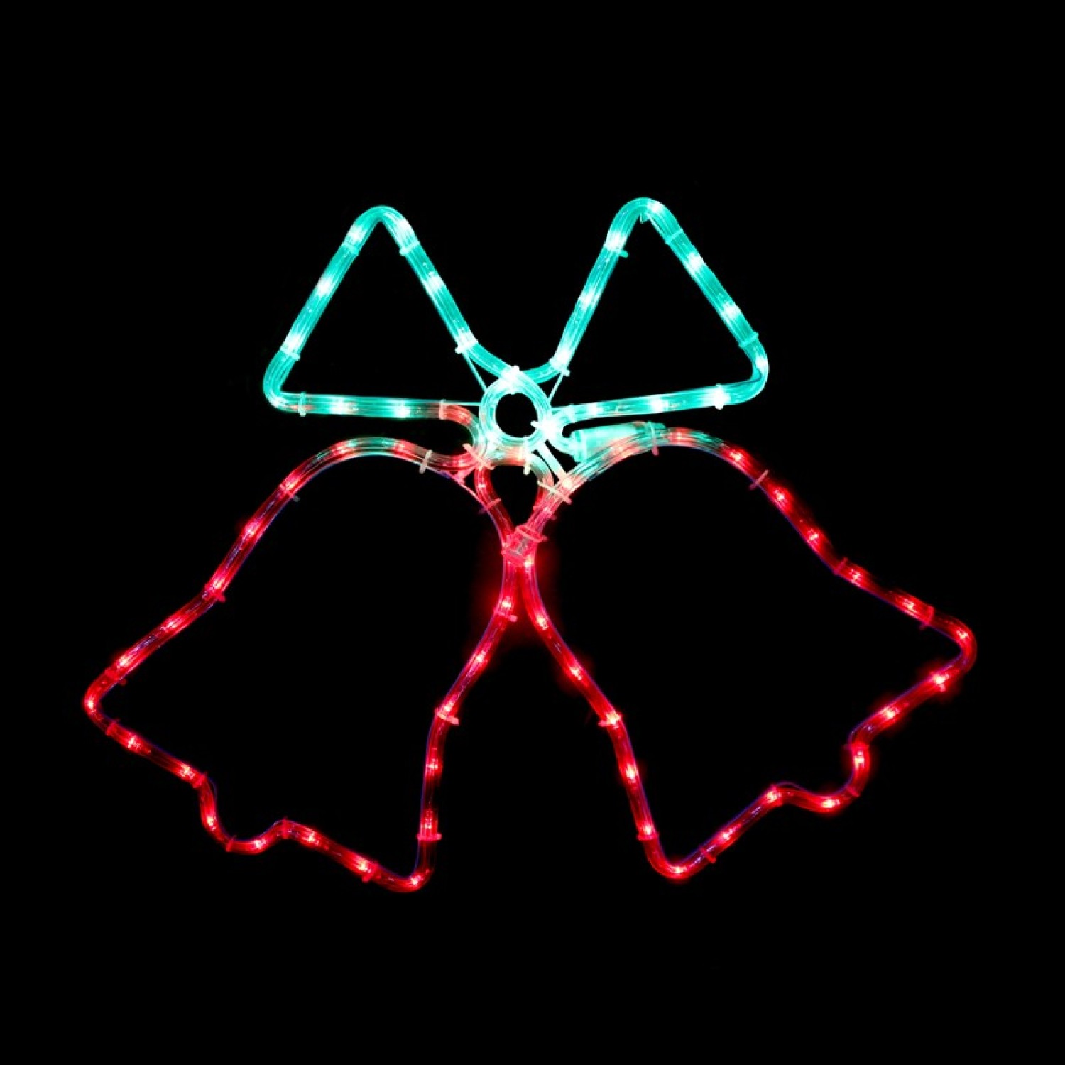 "DOUBLE BELLS", 72 LED MOTIF 3m 2-WIRE ROPE LIGHT, GREEN-RED, FLASH CONTROLLER, IP44, 55x55cm, 1.5m LEAD CABLE