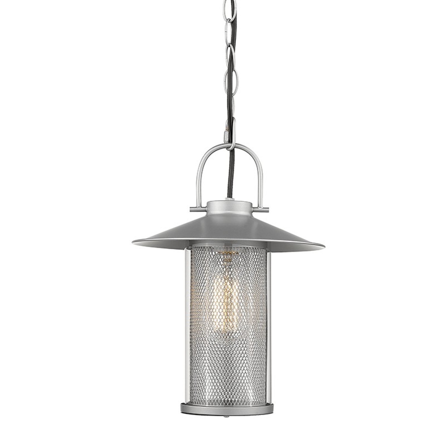 PAINTED SILVER PENDANT LUMINAIRE ROSSA 1XE27 IP44 WITH GRID & CLEAR GLASS