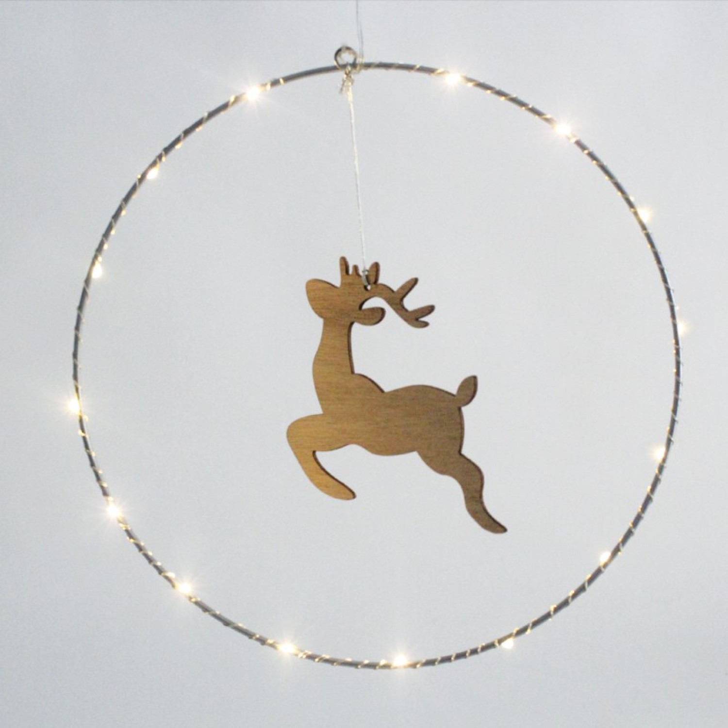 "HANGING CIRCLE REINDEER" 20 MINI LED WW SILVER COPPER LIGHTS WITH BATTERIES (3AA) IP20 Φ30CM (15Χ13CM), 30CM LEAD WIRE TR/NT CABLE