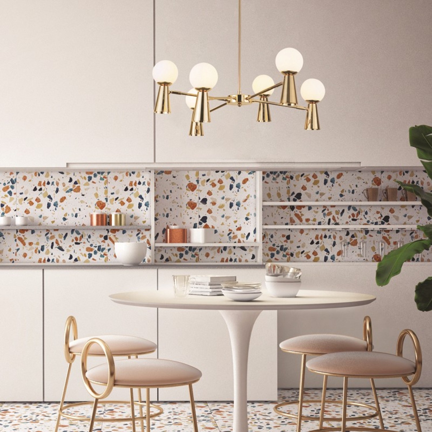 PENDANT L/F 6xG9+6xGU10 KIMOLOS GOLD METAL + WHITE GLASS Φ72Χ120CM