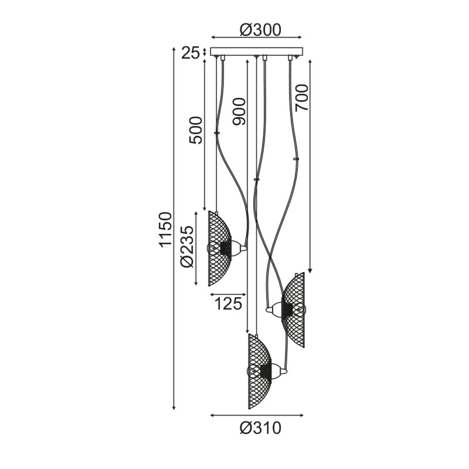 NETTO PENDANT LIGHTING 3ΧE27 BLACK METAL D31ΧΗ115CM KOBE