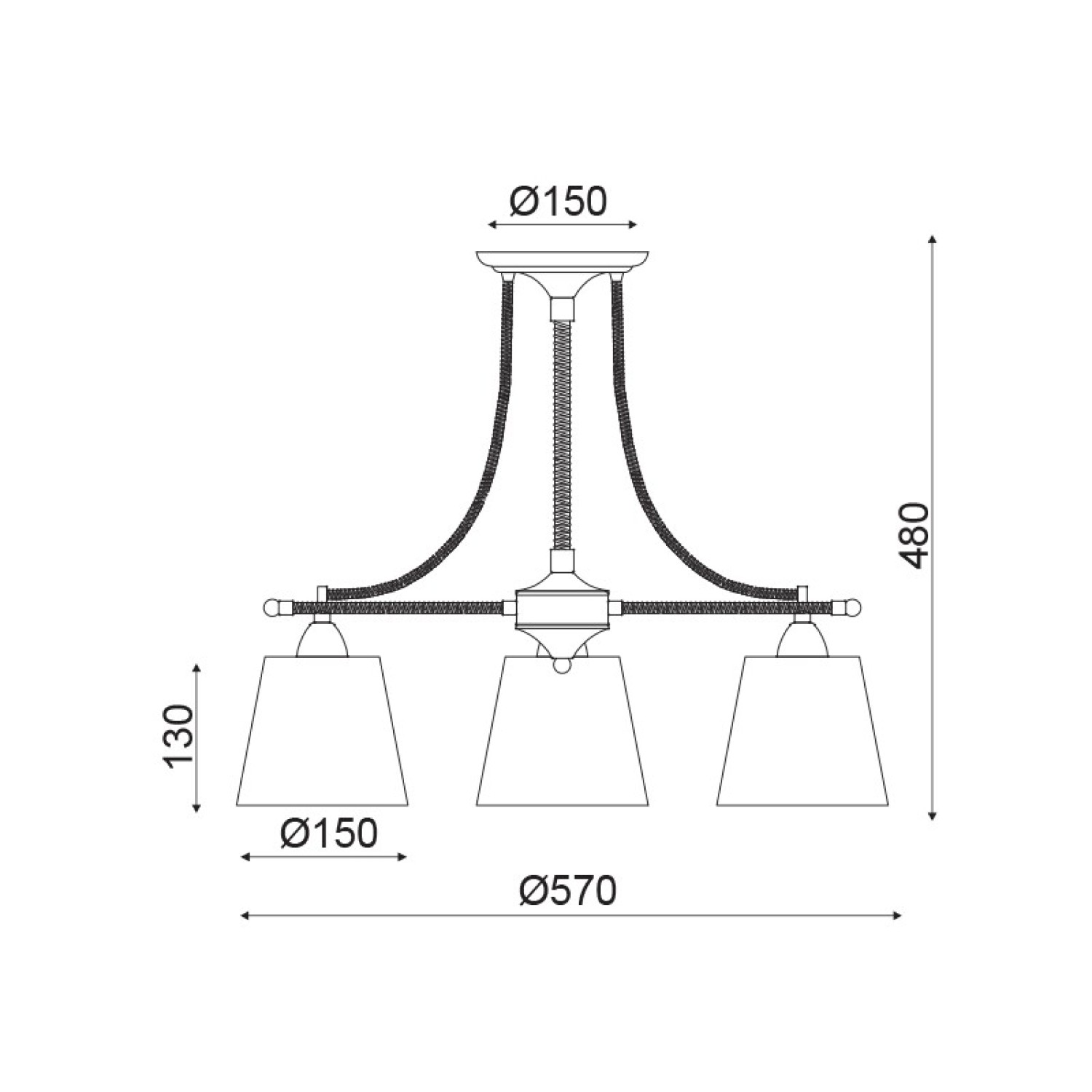 NETTO CEIL 3ΧΕ14 METAL BLACK+ROPE+BEIGE SHADE Φ57ΧΗ48CM GAVDOS