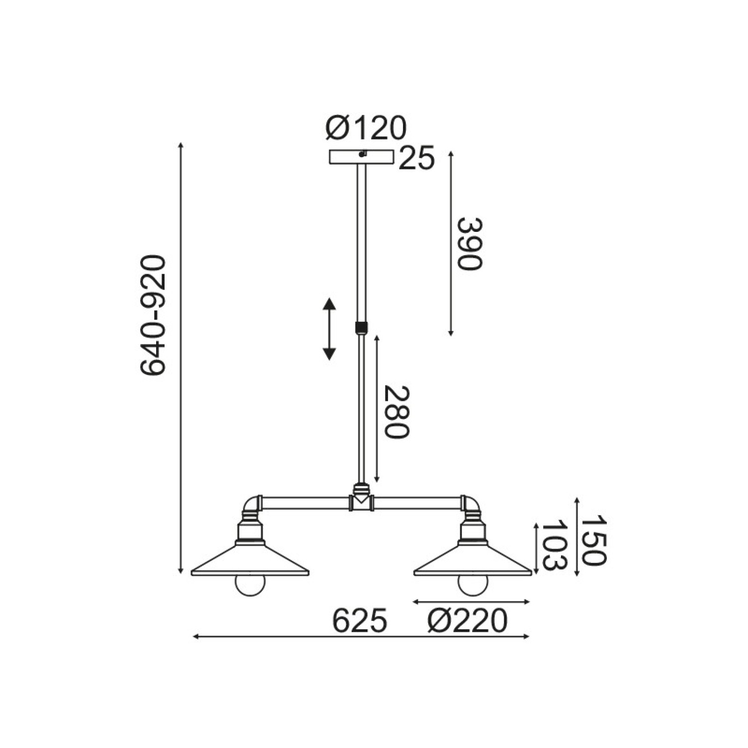 NETTO PENDANT LIGHTING 2ΧE27 BLACK+GOLD METALLIC 63Χ22ΧH92CM PIPE