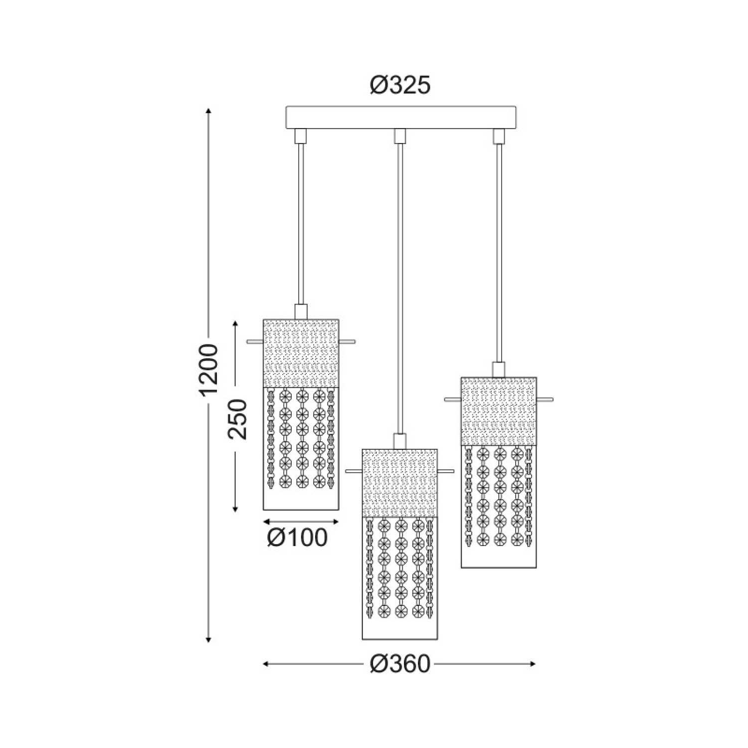 NETTO PENDANT CLEAR GLASS 3ΧΕ14 CRYSTALS MIA