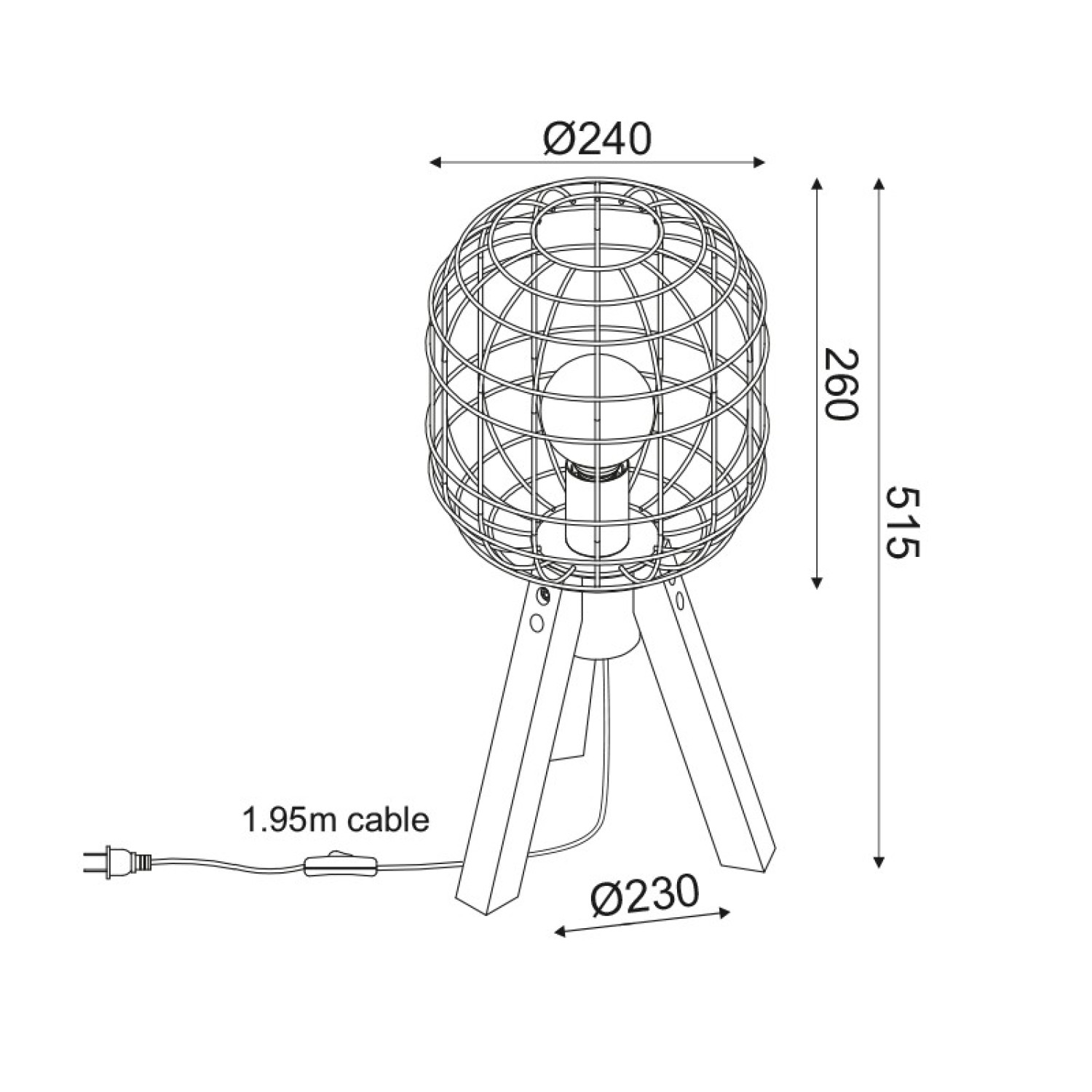 NETTO TABLE L/F 1ΧΕ27 METAL BLACK+WOOD Φ25ΧΗ51,5CM PROMETHEUS