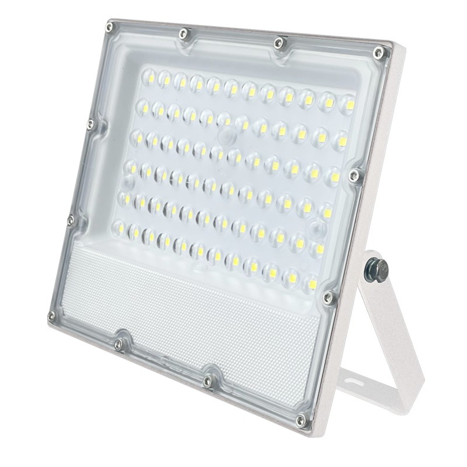 LED WHITE SMD FLOOD LUMINAIRE IP65 50W 4000K 6000Lm 100-277V RA80 IK08 5YRS BREATHING VALUE