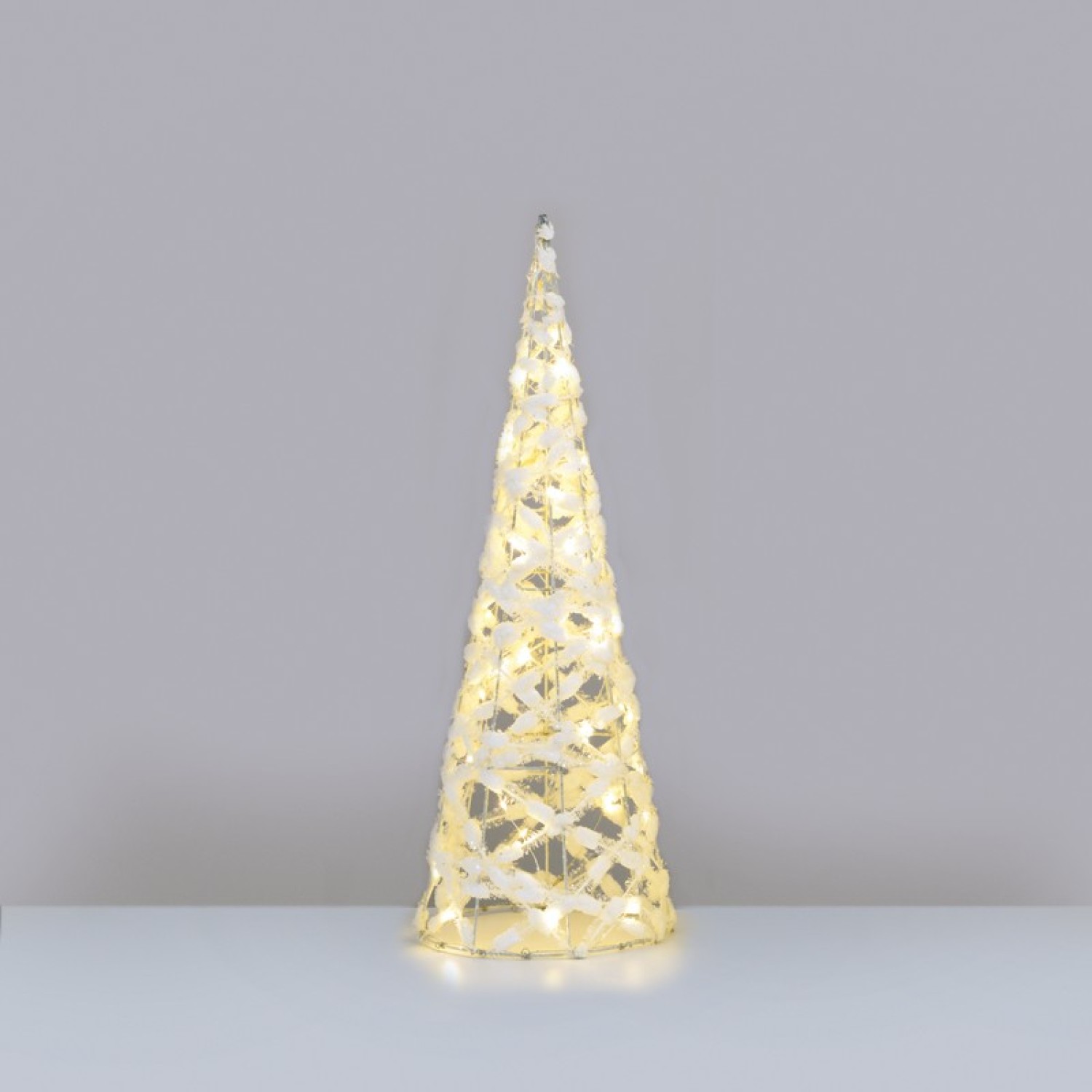 "WHITE COTTON THREAD CONE TREE" 40 MINI WW LED LIGHTS BAT 3ΧΑΑ,IP20 Φ20.5X60CM