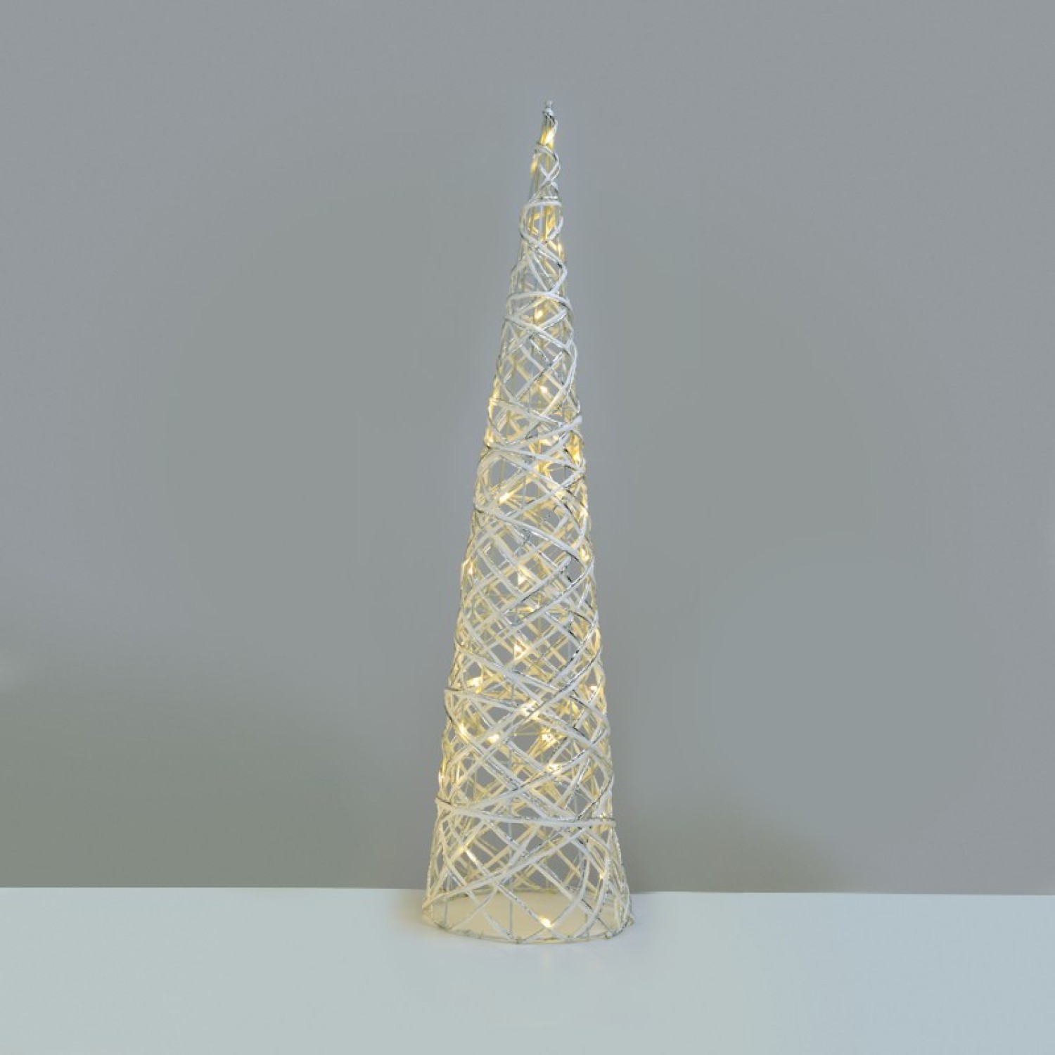 "WHITE & SILVER CONE TREE" 40 MINI WW LED LIGHTS BAT 3ΧΑΑ,IP20 Φ20.5X80CM