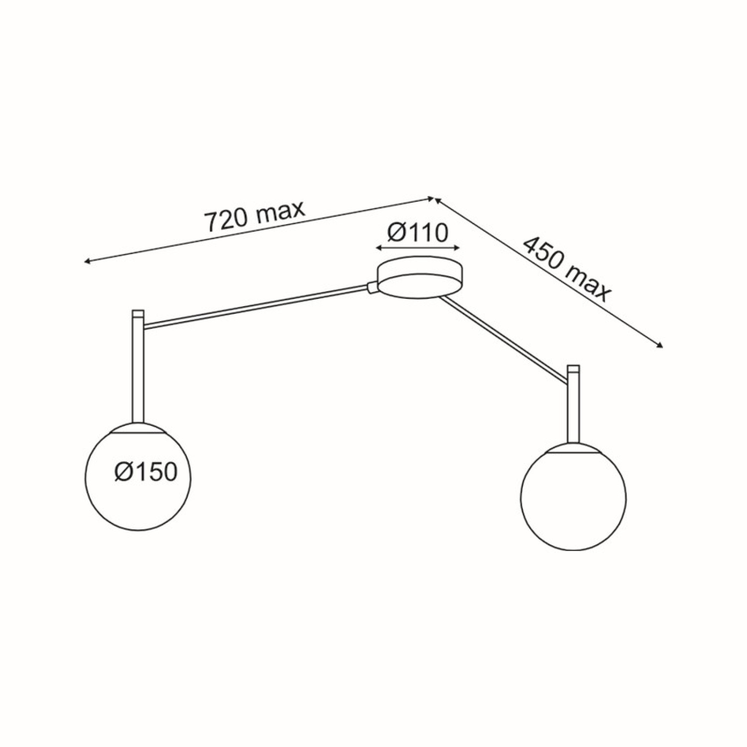 CEILING L/F 2ΧE14 TIRAMOLLA BLACK METAL + WHITE GLASS 72Χ42Χ32CM