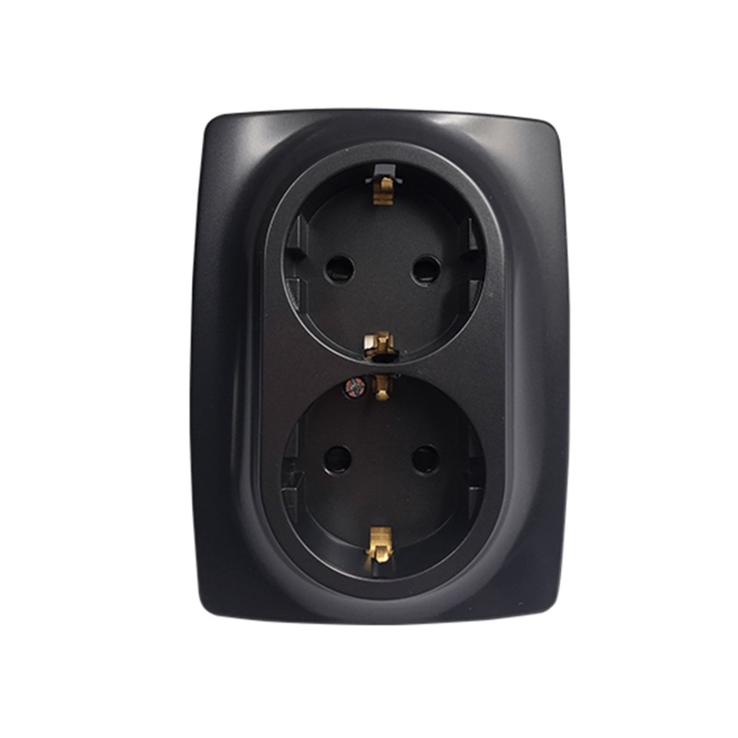 PRIME SCHUKO SOCKET WITH SAFETY SHUTTER 2x2P+E 16A 250VAC IP20 MATT ANTHRACITE