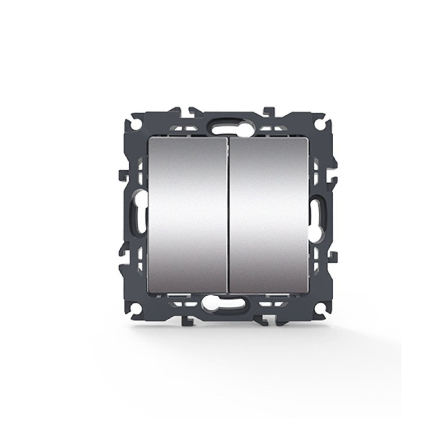 PRIME 2 GANG 1 WAY SWITCH SCREWLESS 1+1P 10AX 250VAC IP20 MATT ALUMINUM