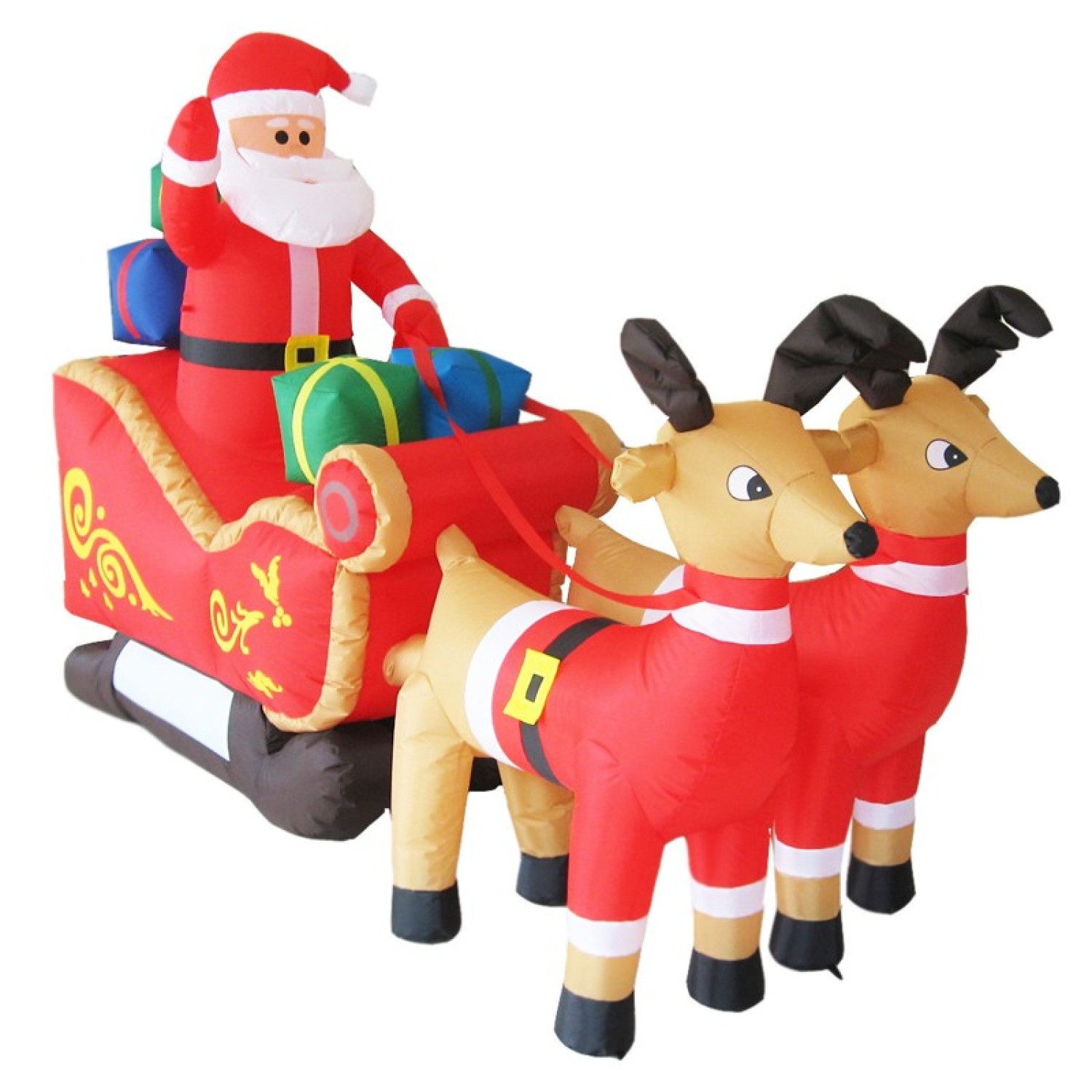 "INFLATABLE SANTA SLEIGH + 2 REINDEER" 12 LED LIGHTS ADAP (12V) WW STEADY IP44 L250xH150CM 2M BLACK LEAD CABLE